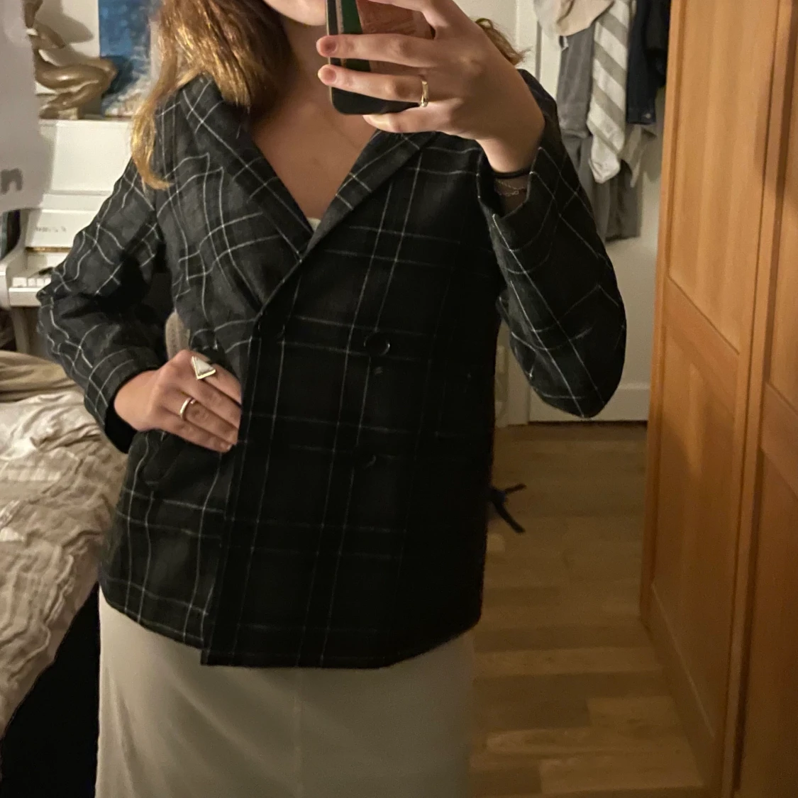 Svartvit rutig blazer i tunt material från Nakd! Jag har använt den få gånger så den är i mycket bra skick! Köptes för ca 400 kr.