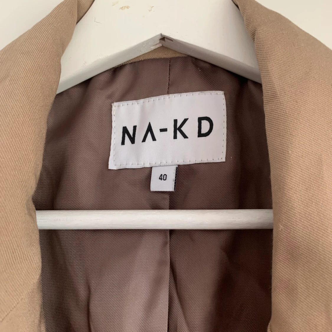 Beige kavaj från NAKD. Använd endast ett fåtal gånger. Storlek 40. Kan hämtas i Kallebäck eller skickas mot fraktkostnad.