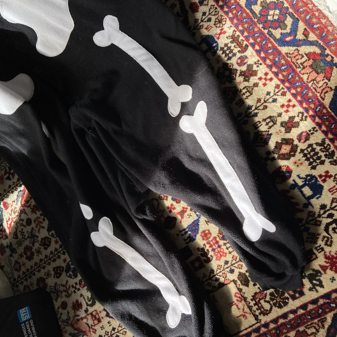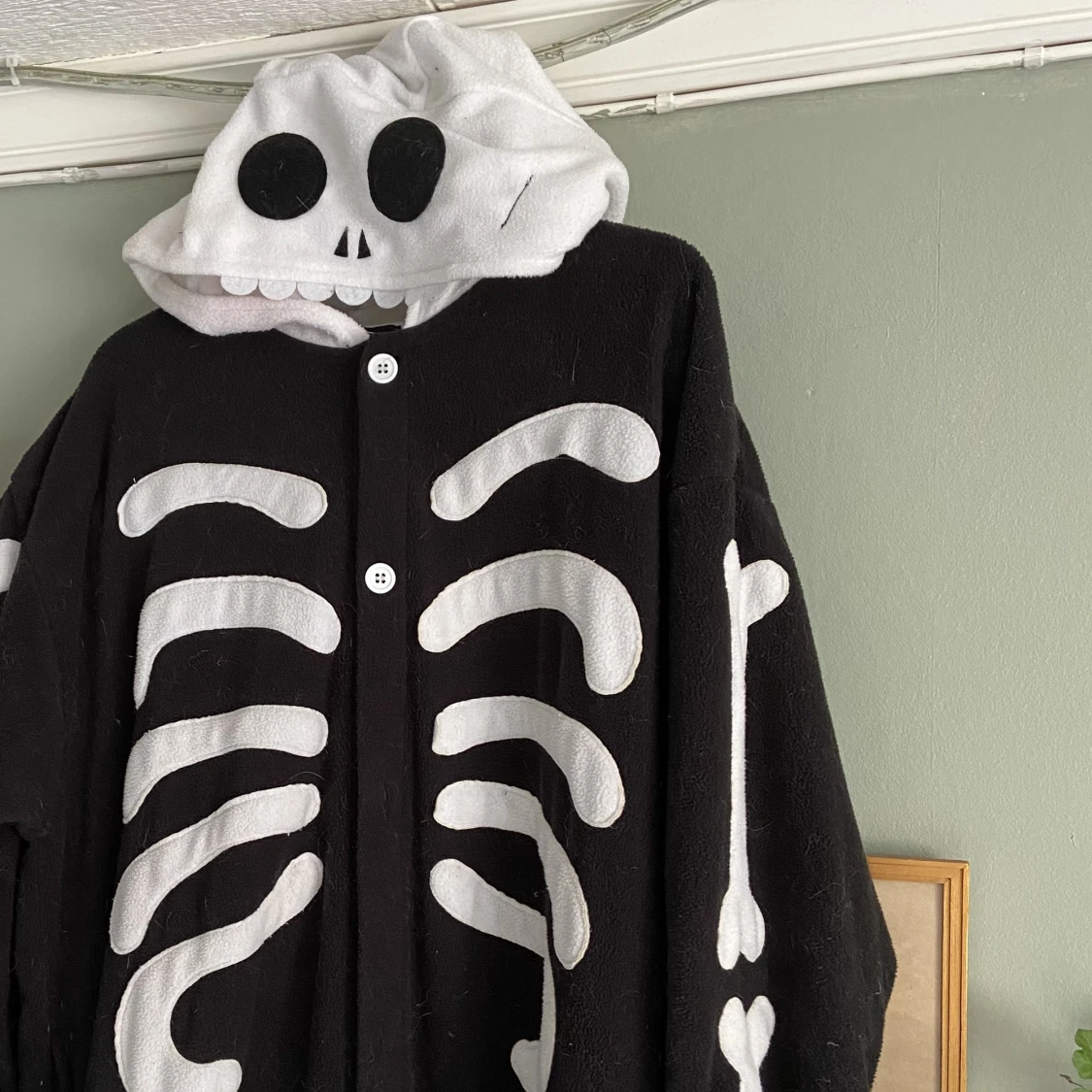 Mysig skelettkigurumi som säljs pga att jag inte använder den. Stor och rymlig så passar perfekt för kalla höstkvällar! Superfint skick, obs: katter finns i hemmet.
