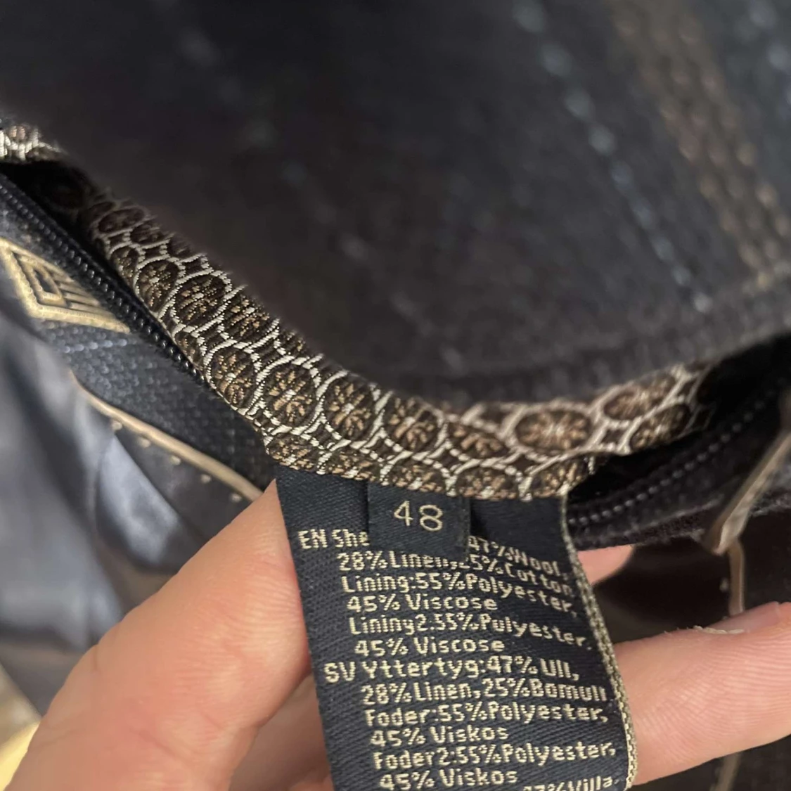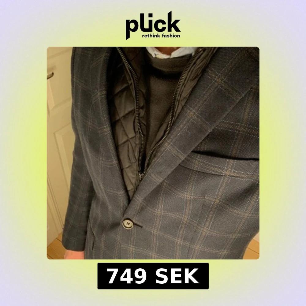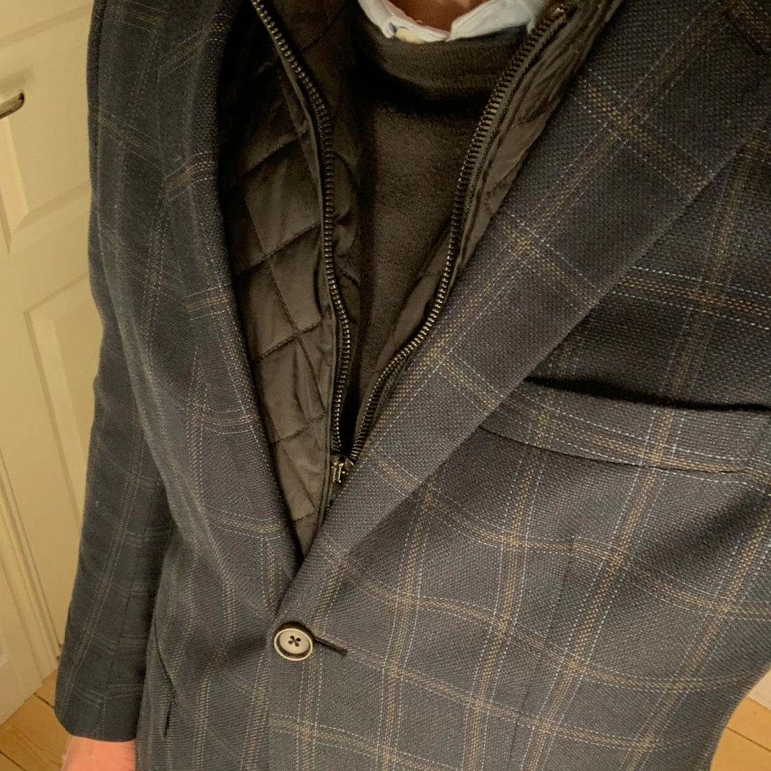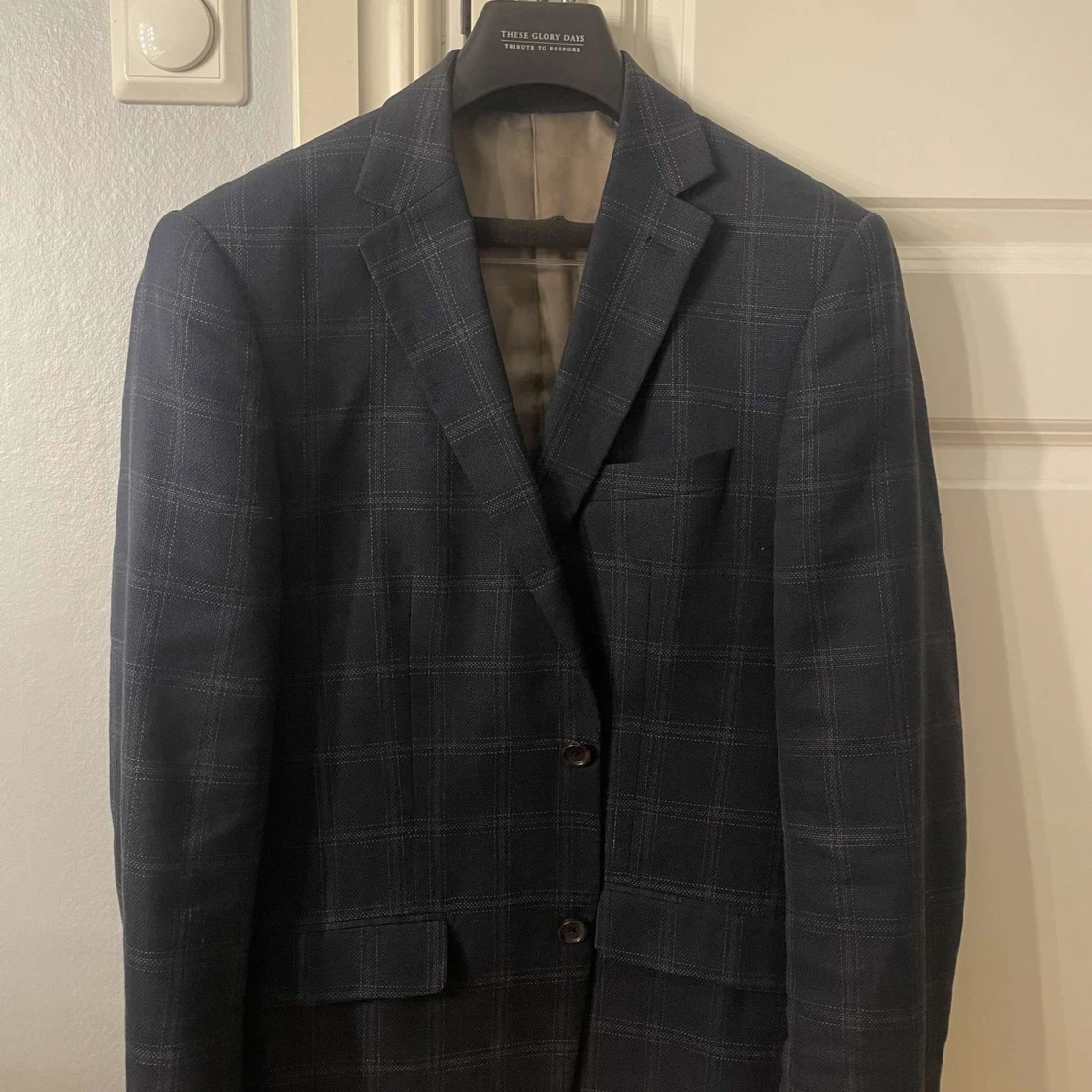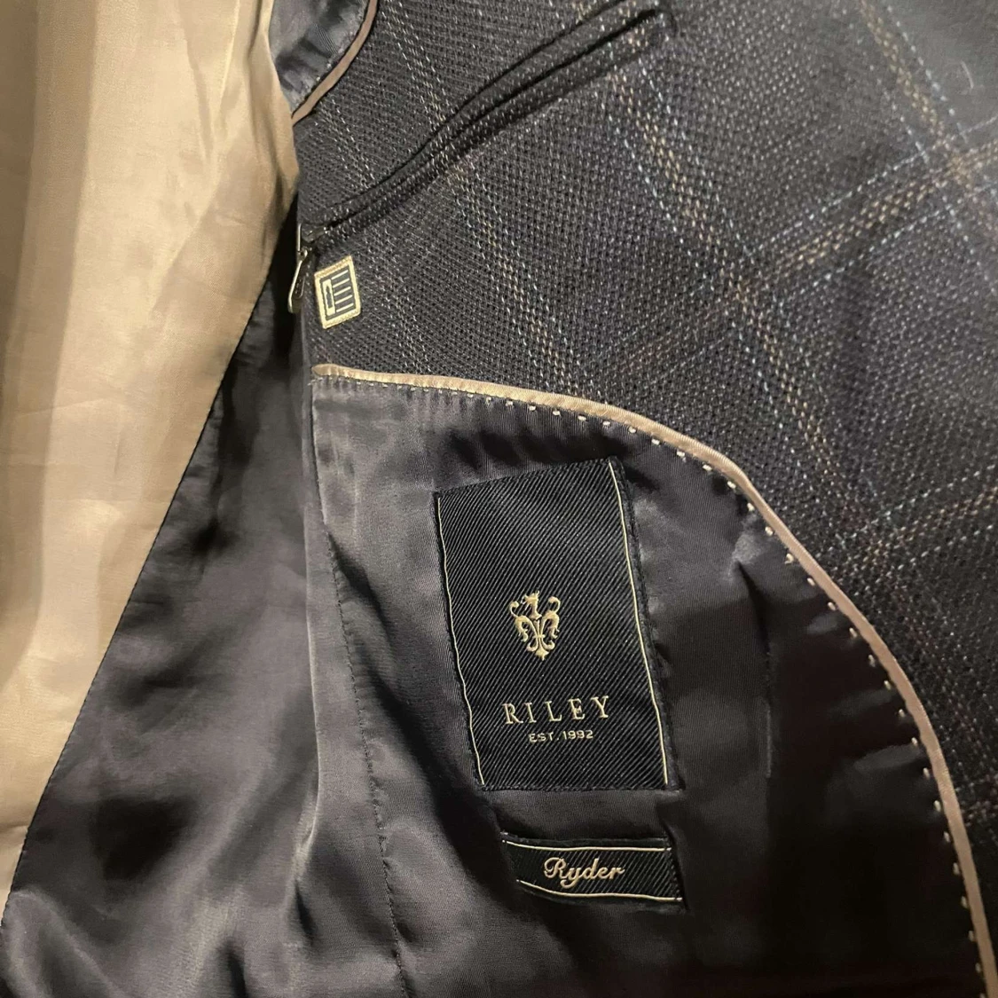 Riktigt snygg mörkblå kavaj med bruna inslag från Riley med rutmönster i riktigt bra skick. Storlek 48. Material är främst ull och linne. Priset är inte hugget i sten