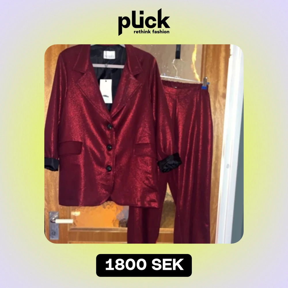 Coolast på festen? Ja lätt i denna kostym i glittrigt rött tyg i small från Noella Nypris ca 3000:-