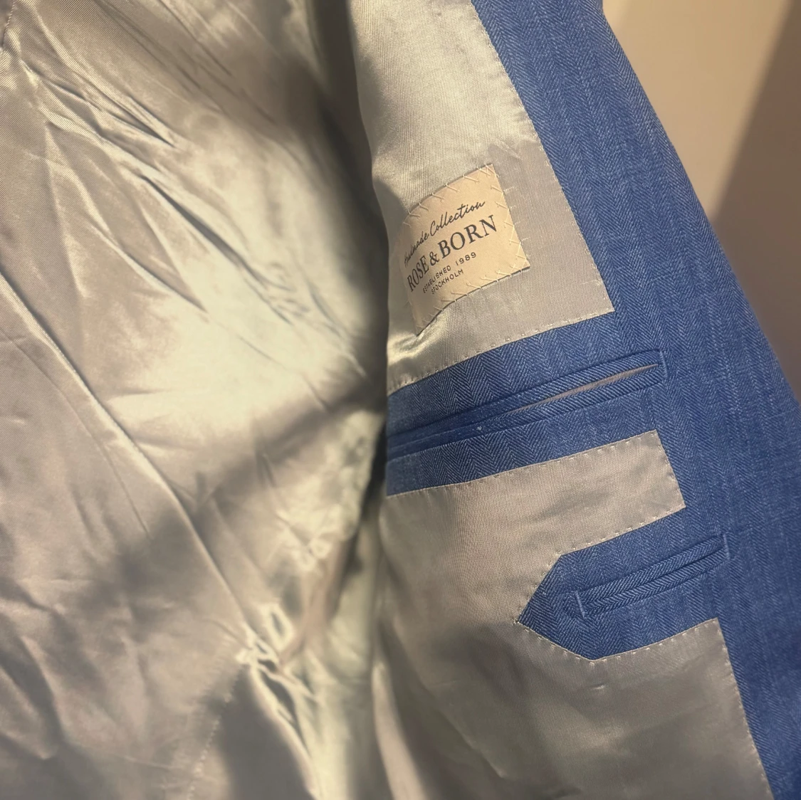 Rose & Born kavaj handmade collection i storlek 50 med upplagda armar, men som lätt kan läggas ned. Nypris: ca 15 tusen. Mitt pris 1000