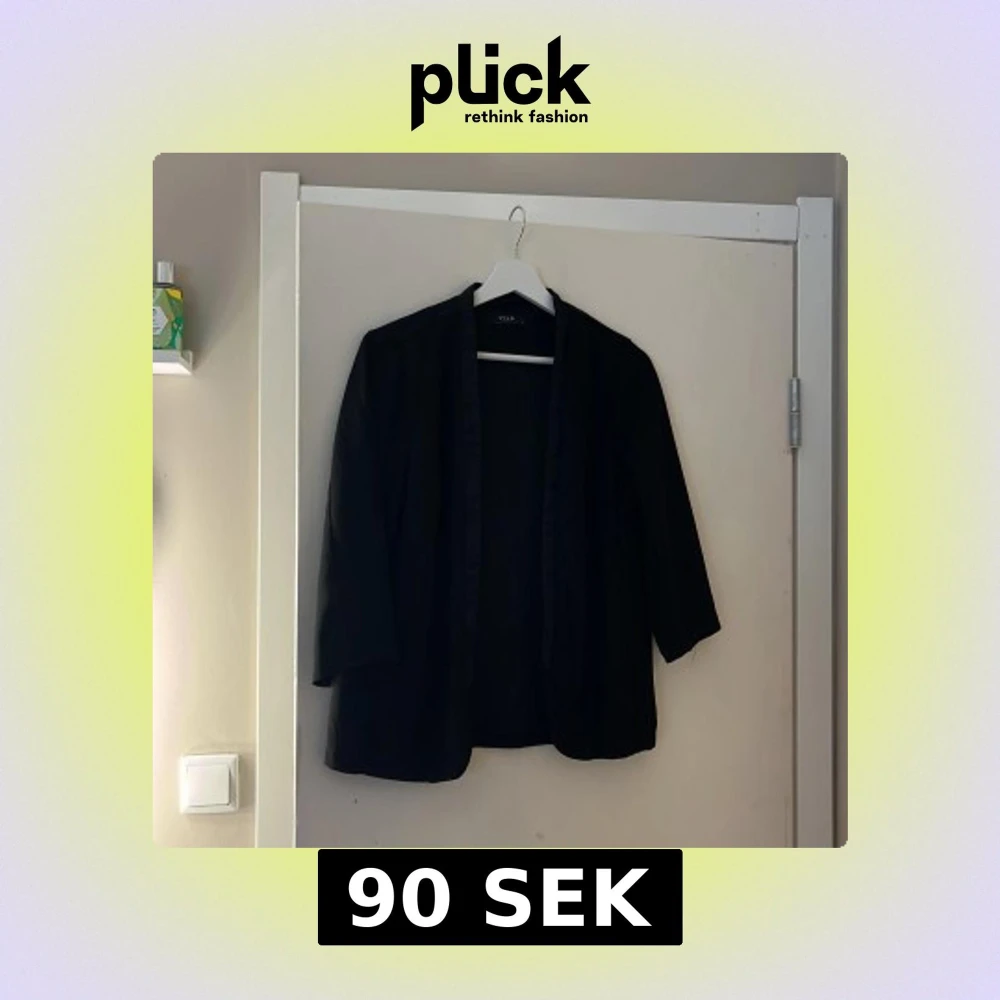 Tunn kavaj i glansigt material med 3/4 ärmar. I storlek S!