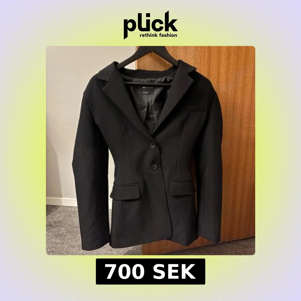 Klassisk svart kavaj från ASOS design med två knappar framtill och två fickor med lock. Snyggt skräddad passform och helfodrad insida. Perfekt till kostymbyxor eller jeans för en stilren look.