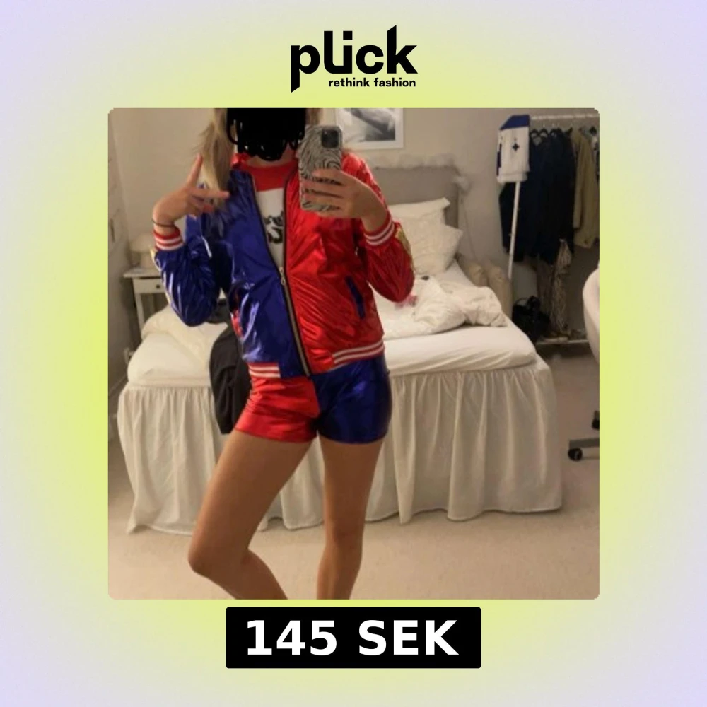Säljer denna sjukt snygga Harley Quinn dräkt! Perfekt nu till halloween. Det som medföljer är shorts, t-shirt, jacka och en handske . Passar xs-s skulle jag säga