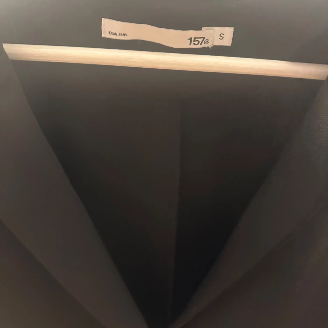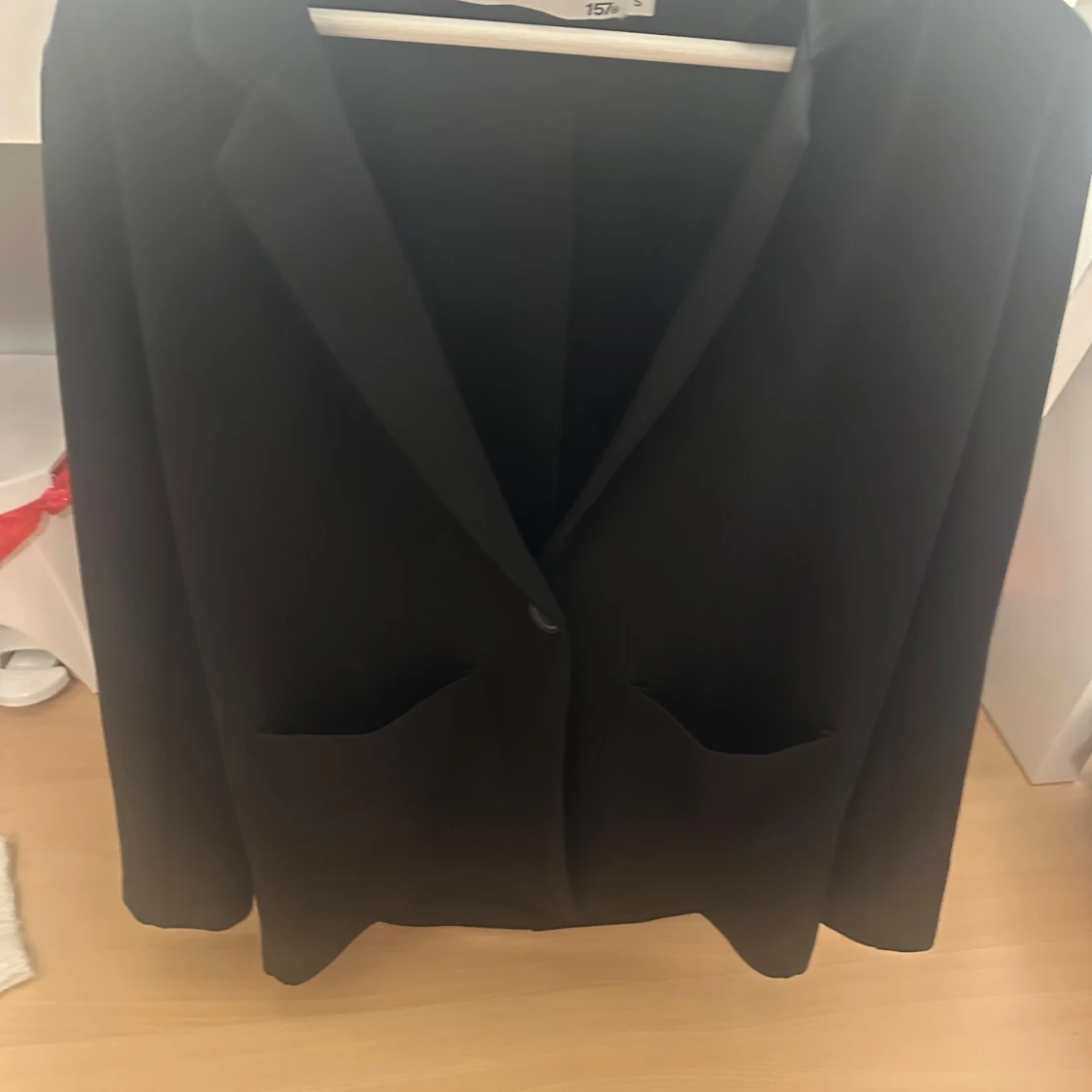 Stilren svart kavaj från 157 i storlek S. Klassisk design med två framfickor och enkelknäppning. Perfekt för dig som vill ha en tidlös och clean look. Snygg passform och enkel att matcha med olika outfits.