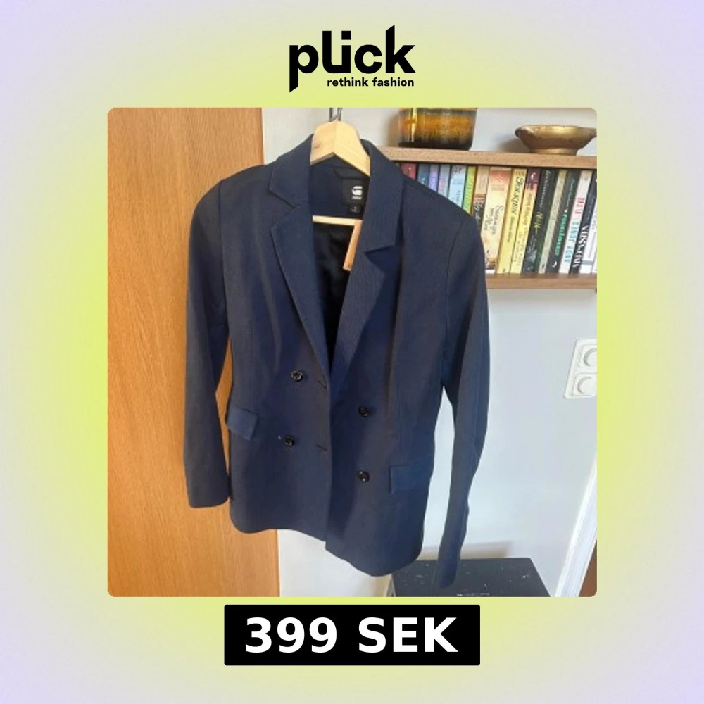 Snygg mörkblå kavaj från G-Star RAW i klassisk dubbelknäppt modell. Kavajen har två fickor framtill, smala slag och knappar vid ärmslut. Perfekt för en stilren look och passar till många olika outfits.