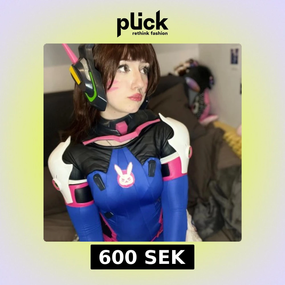 Säljer en detaljerad D.Va cosplaydräkt från Overwatch med blå, svart, vit och rosa färger. Dräkten har tryckt kaninlogga på bröstet, axelskydd i vit plast och matchande headset med neonfärger. Materialet är syntet och polyester, perfekt för cosplay eller konvent. Säljer då dräkten är lite för liten! Dräkten har lite slitage men inget jättestort. Kan mötas i göteborg