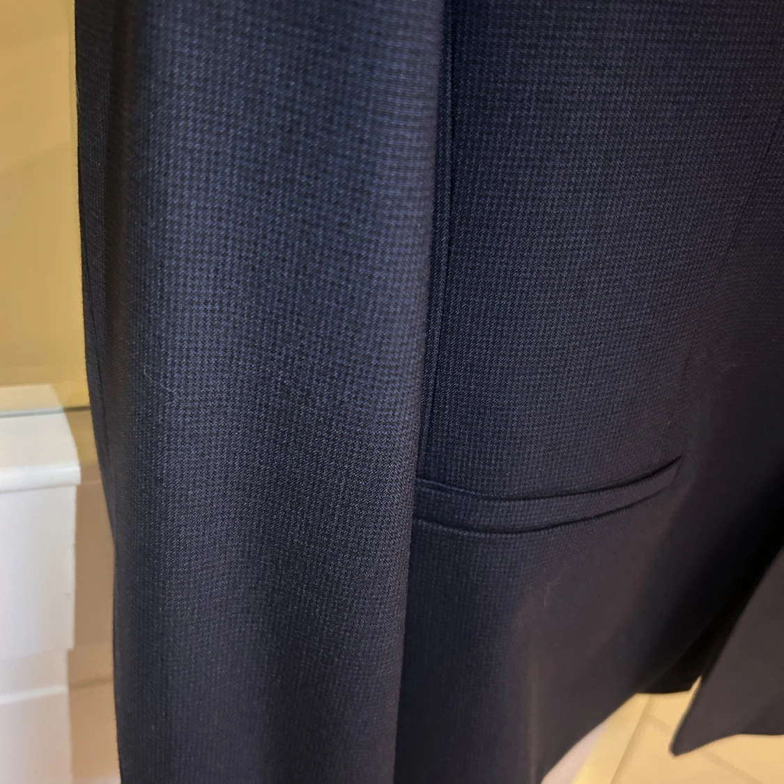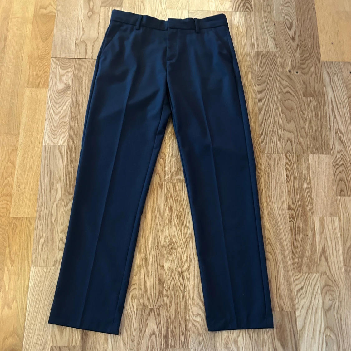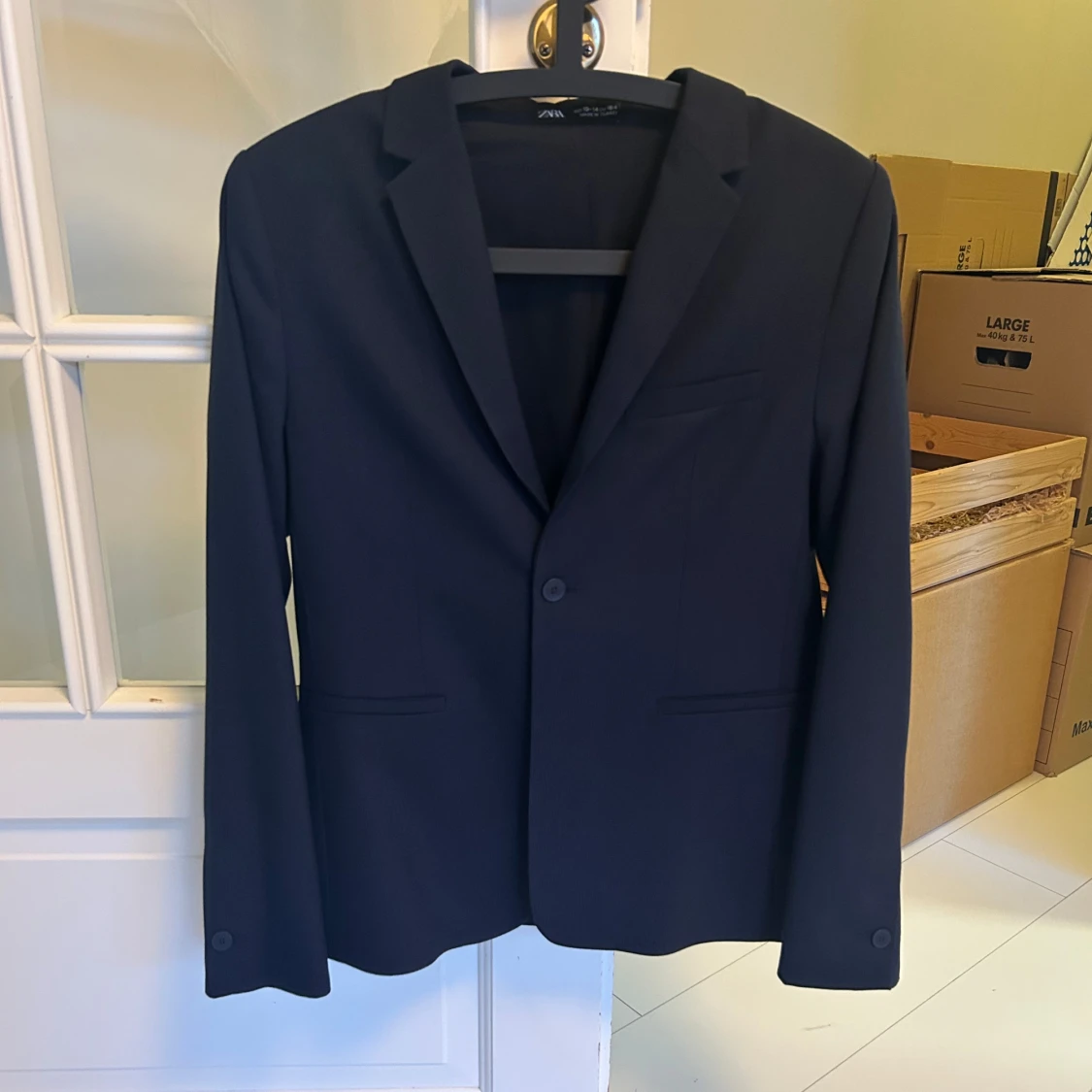 Säljer en stilren mörkblå kostym från Zara Man. Kavajen har klassisk passform med en knapp och raka fickor. Byxorna är raka med pressveck. Perfekt för skolavslutningen! Storlek 164 cm