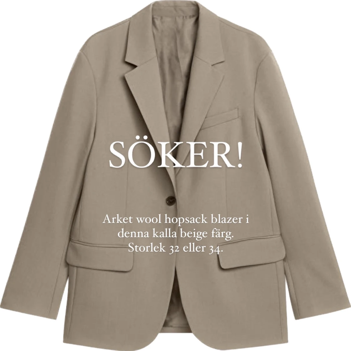Söker specifikt denna: Oversized wool hopsack blazer, från Arket. Denna färg säljs inte längre men jag köper den gärna om någon vill sälja. Storlek 32 eller 34 är av intresse och såklart fint skick. Återkom med ditt pris om du vill sälja denna.