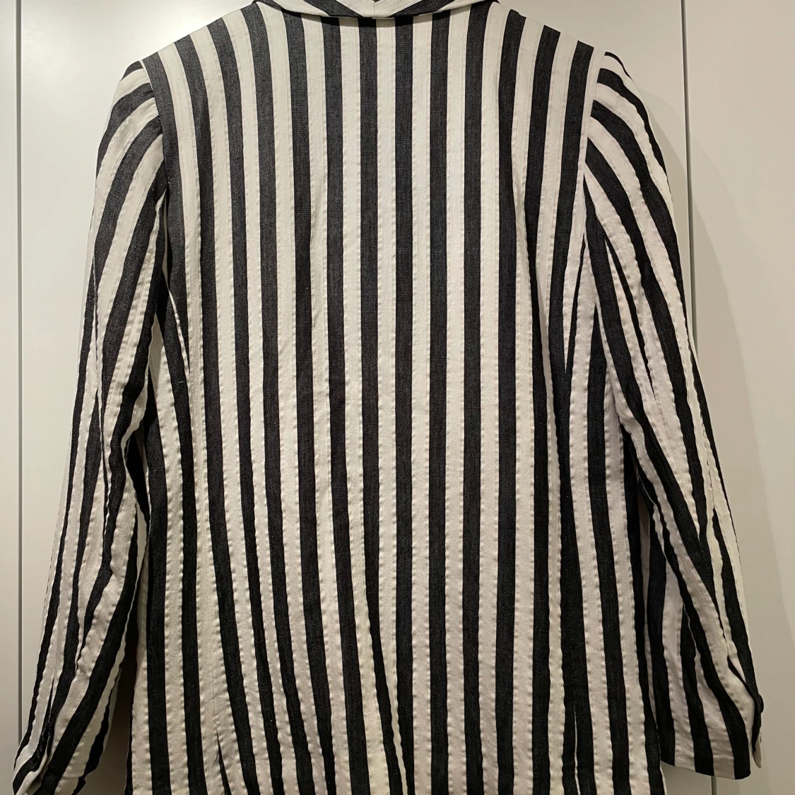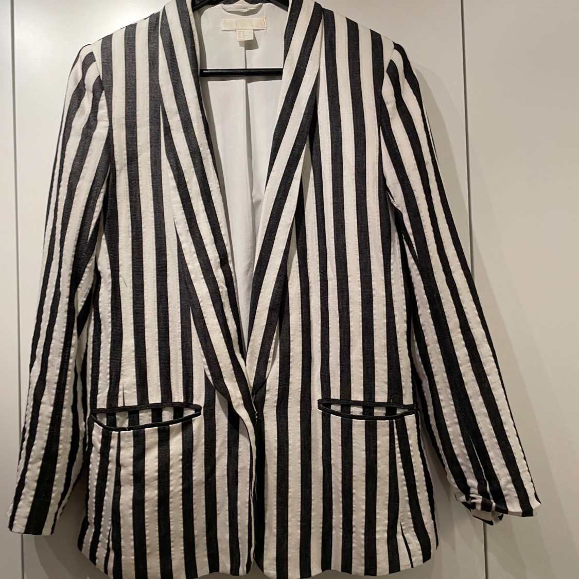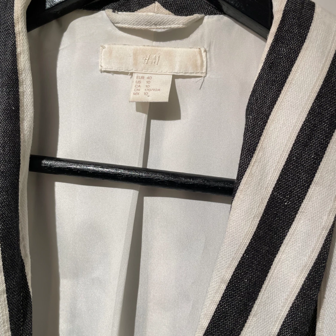 Rak modell, linne/bommul, snygg och rolig kavaj. Mycket skön. Liten i storleken.