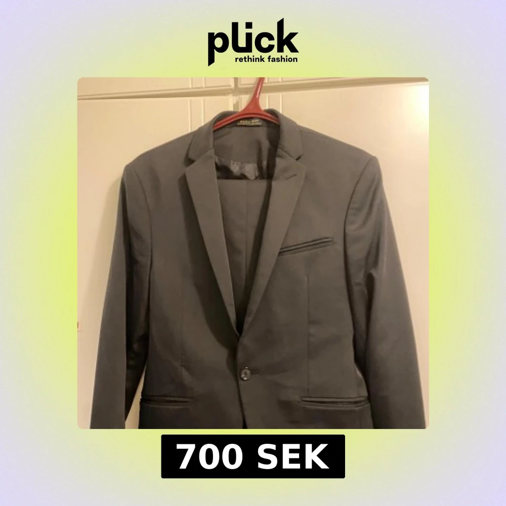 Säljer en stilren svart kostym från Zara Man. Kostymen består av en kavaj med klassisk krage och matchande byxor. Perfekt för bal eller fest. Kavajen har fickor med lock och knappar vid ärmslutet. Använd bara en gång.