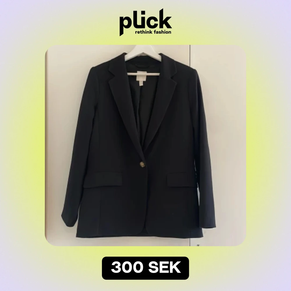 Svart kavaj från hm i storlek 40. Endast använd ett fåtal gånger, väldigt fint skick, säljer pga förliten för mig