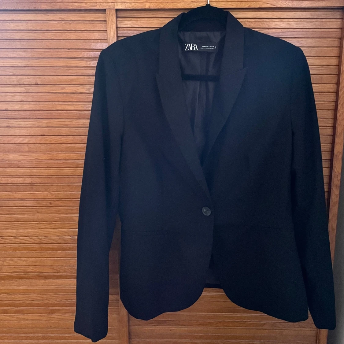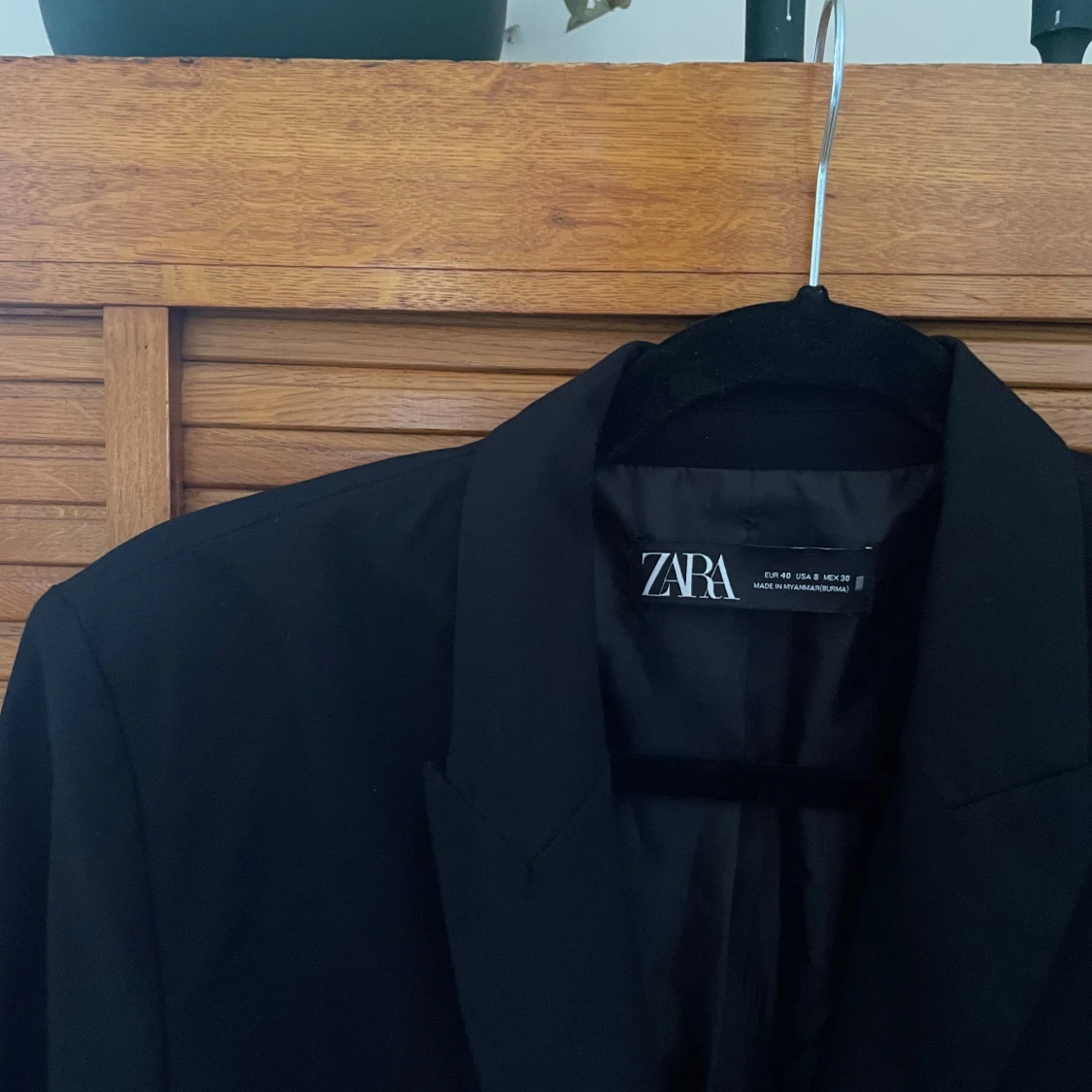 Svart kavaj från Zara i storlek 40. Den är lite tajtare i midjan och faller superfint! Köpt för 399 och använd 1 gång.
