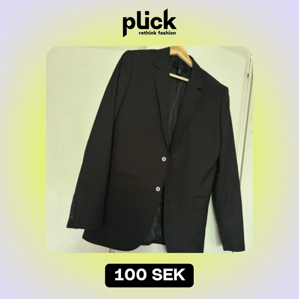 Svart ganska oversized kavaj från Hm. Står att det är storlek 46 på lappen. Det finns dock två fläckar på framsidan, därav det billiga priset. De går säkert att tvätta bort har bara inte testat! Kom privat för fler bilder🫶🏻
