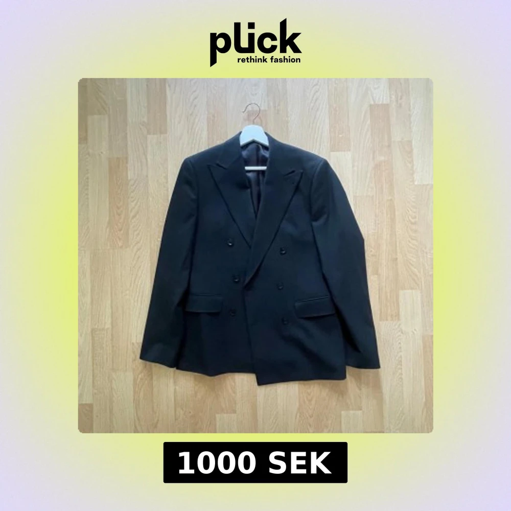 Dubbelknäppt svart kavaj från Bläck med skräddad passform. Klassisk design med breda slag, två fickor med lock och innerfoder. Perfekt för dig som gillar stilren och tidlös look.