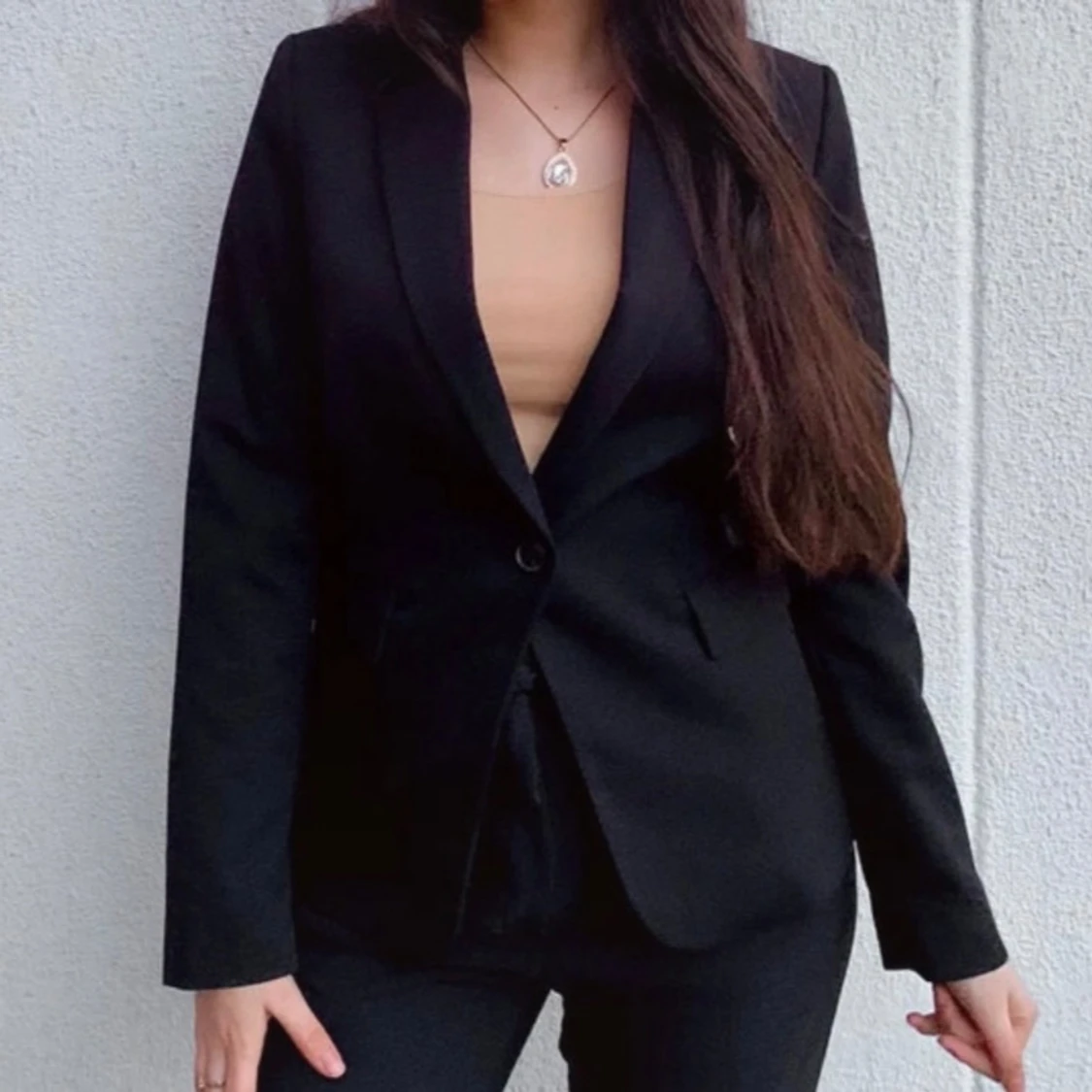 Snygg svart kavaj från Mango med klassisk kavaj och matchande byxor. Passar både xs och s