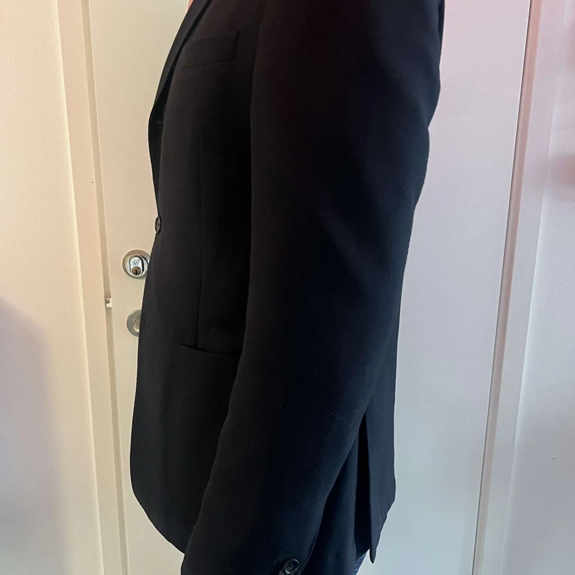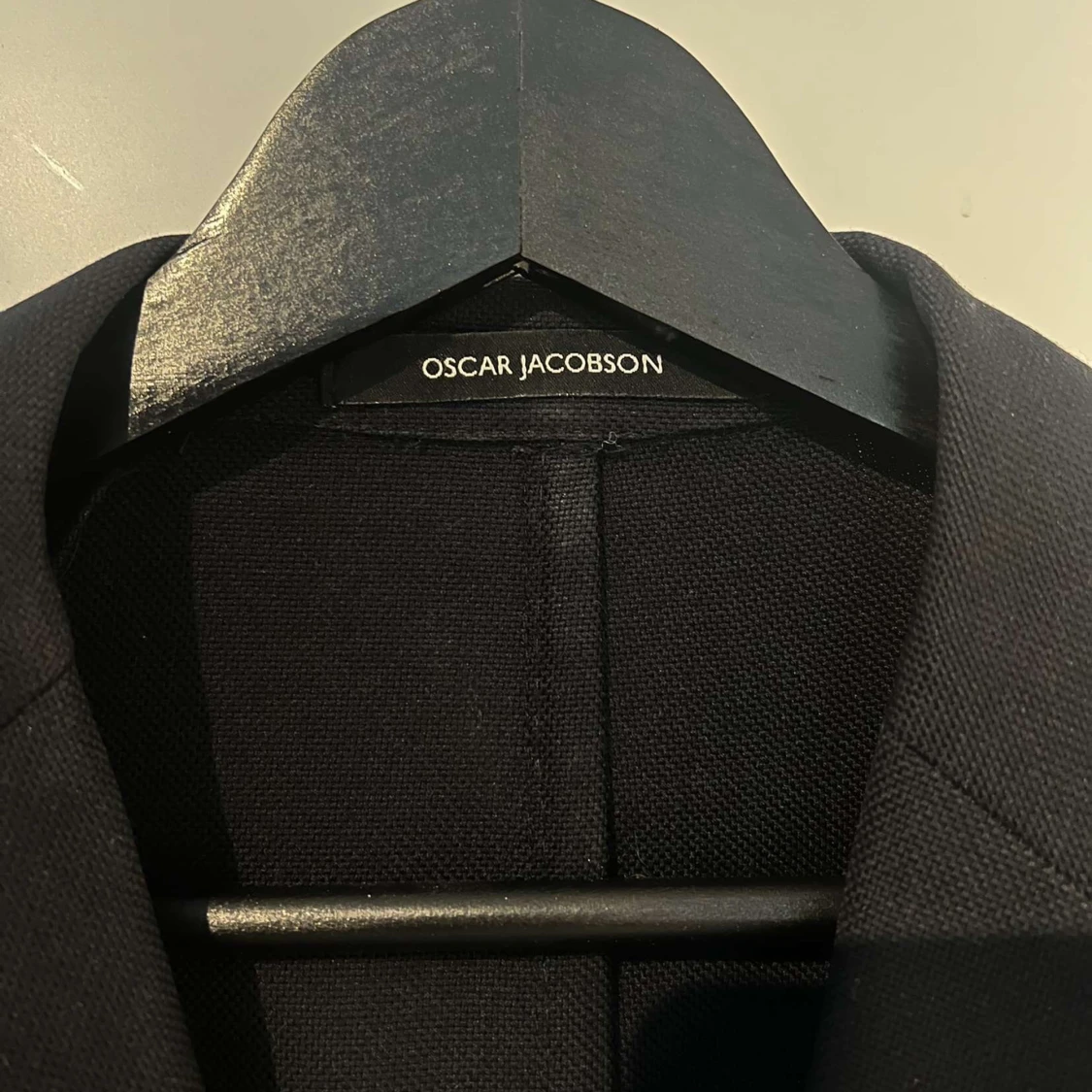 Säljer en stilren svart kavaj från Oscar Jacobson i storlek herr M. Kavajen har en klassisk design med två knappar fram och är perfekt för både fest och formella tillfällen. Materialet känns lyxigt och passar bra till både jeans och kostymbyxor.