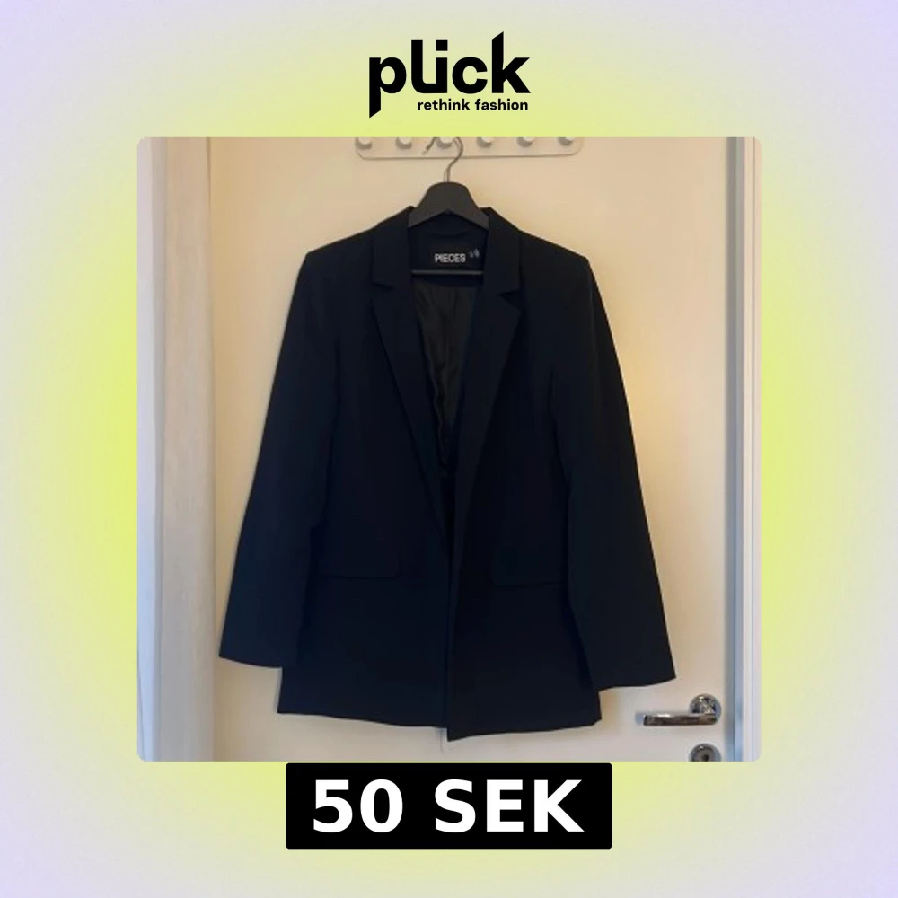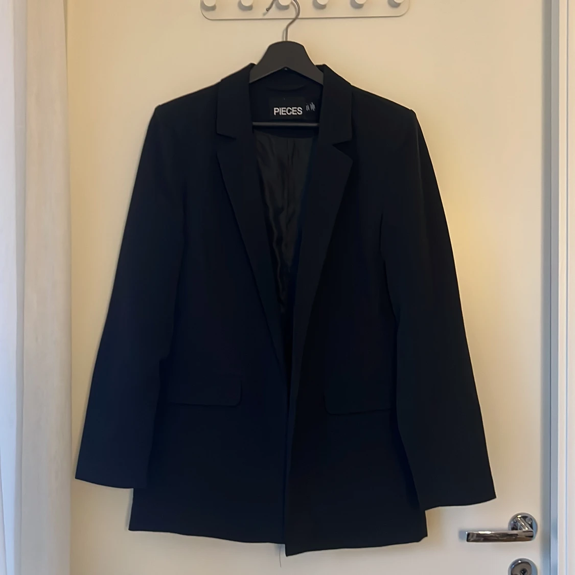 Stilren svart kavaj från Pieces i klassisk modell med krage. Kavajen är helfodrad och har en rak passform som passar till många olika looks. Perfekt för dig som gillar en clean och tidlös stil.