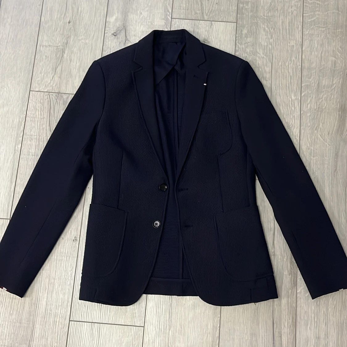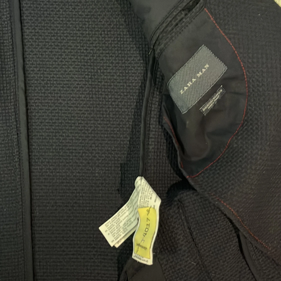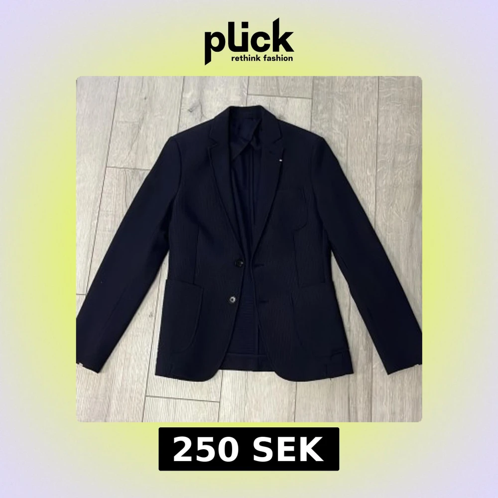 Elegant svart kavaj från Zara Man med två knappar framtill. Kavajen har en klassisk design med smal passform och är perfekt för formella tillfällen. Den är tillverkad i ett material som ger en stilren look.
