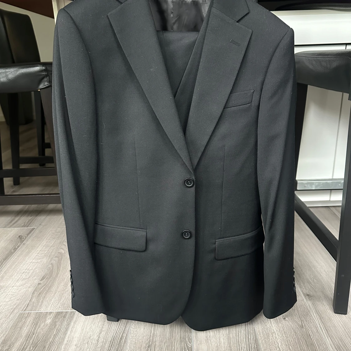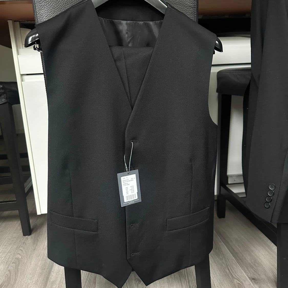 En helsvart sprillans ny komplett kostym från Dressmann. Använd 1 gång, sedan dess har den bara blivit bortglömd. Nypris 3000