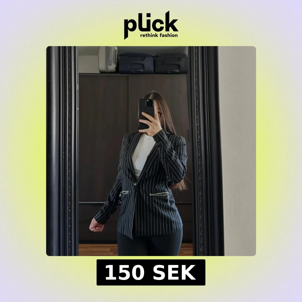 Snygg svart kavaj med vita ränder från Rosy Boy. Kavajen har en klassisk passform med dragkedjor vid fickorna för en modern touch. Perfekt för att ge en stilren look till din outfit.🥰🥰🥰