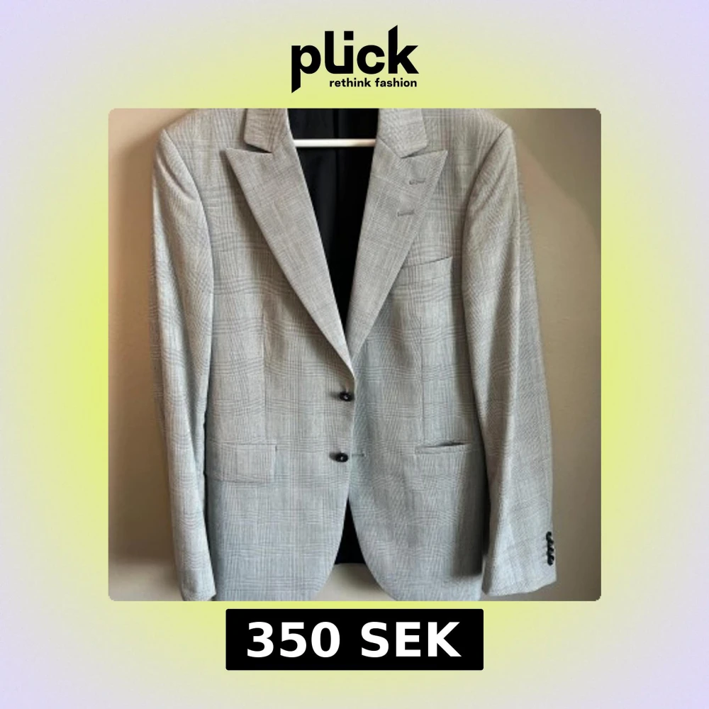 Snygg grå kavaj från Tiger of Sweden med diskret rutigt mönster och klassisk passform. Kavajen har två knappar framtill, spetsiga slag och flera fickor både utvändigt och invändigt. Fodret är svart och materialet känns lyxigt och lätt. Perfekt för dig som gillar stilrena detaljer.