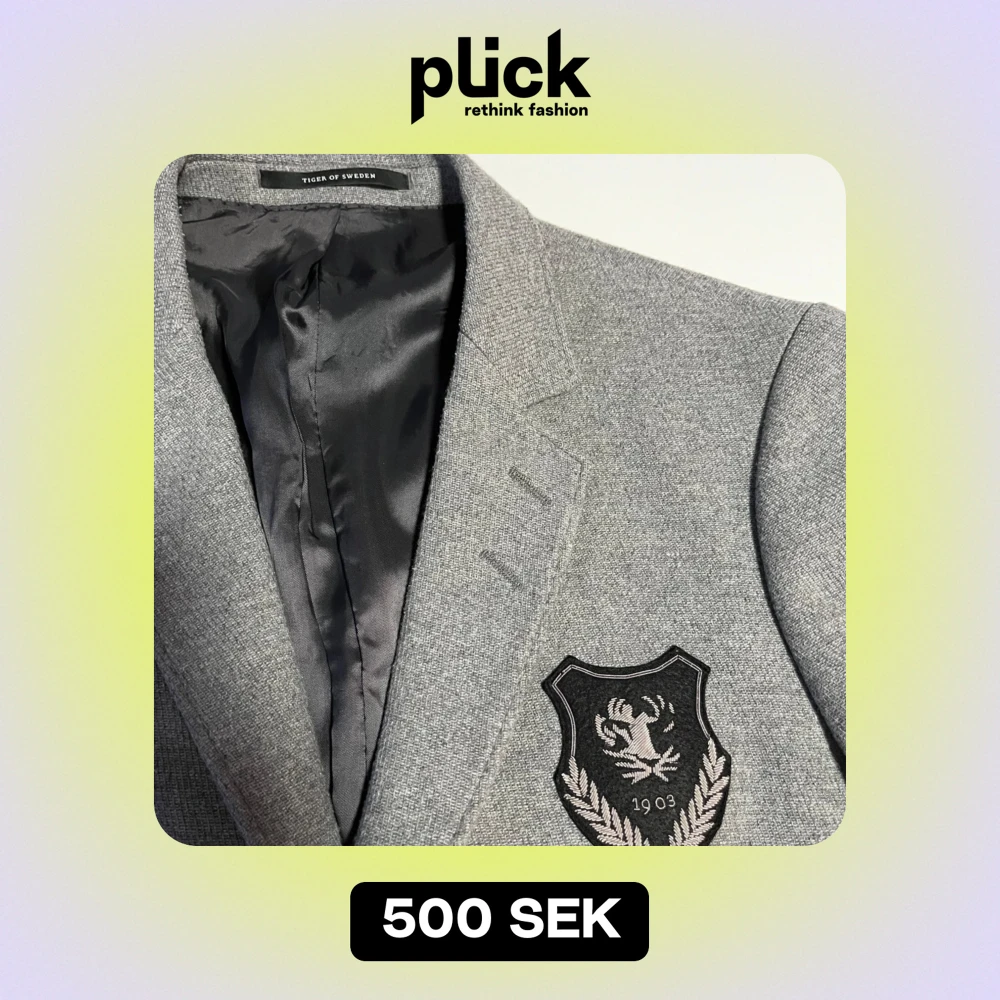Snygg grå kavaj från Tiger of Sweden i mycket bra skick. Den har ett stilrent emblem på bröstet och är fodrad med ett prickigt mönster. Perfekt för både formella och semi-formella tillfällen. Kavajen har två knappar framtill och en klassisk passform.