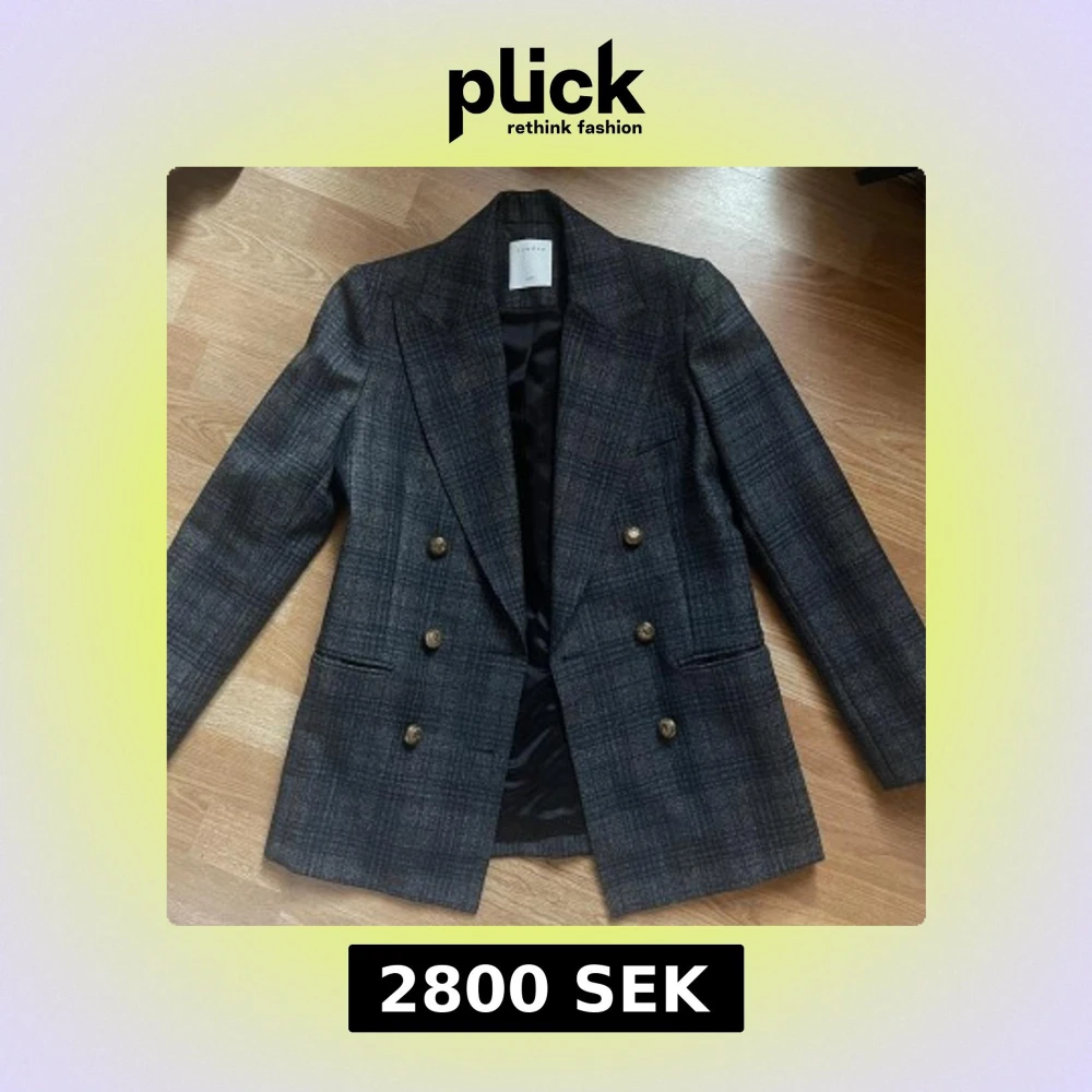 Snygg grå rutig kavaj från Sandro Paris med dubbelknäppning och stiliga guldknappar. Perfekt för en classic look. Formen är super snygg och är i mycket bra skick.