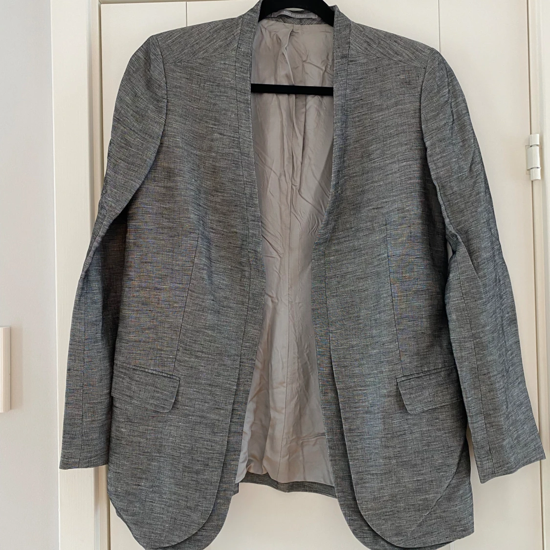 Svart och beige kavaj i linne och viskos från Tiger of Sweden i strl 36. Modell Zurie Sparsamt använd och i fint begagnat skick. Mått Över bröstet: ca 47 cm Längd från axeln och ner: ca 73 cm 55% linne och 45% viskos