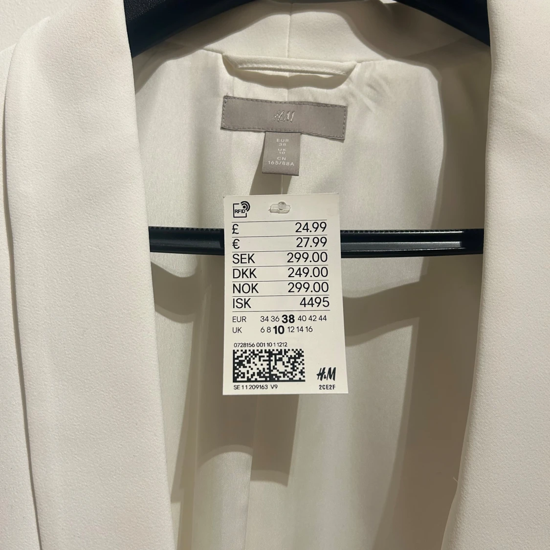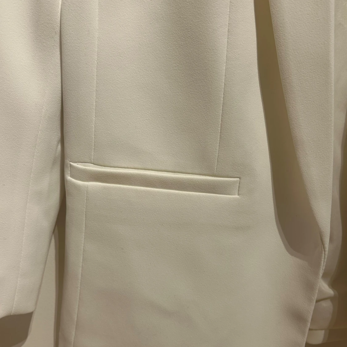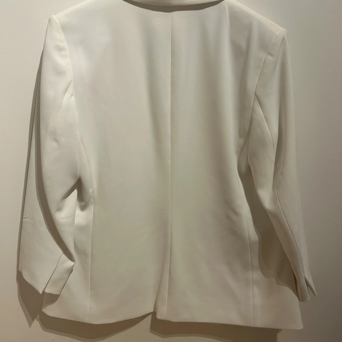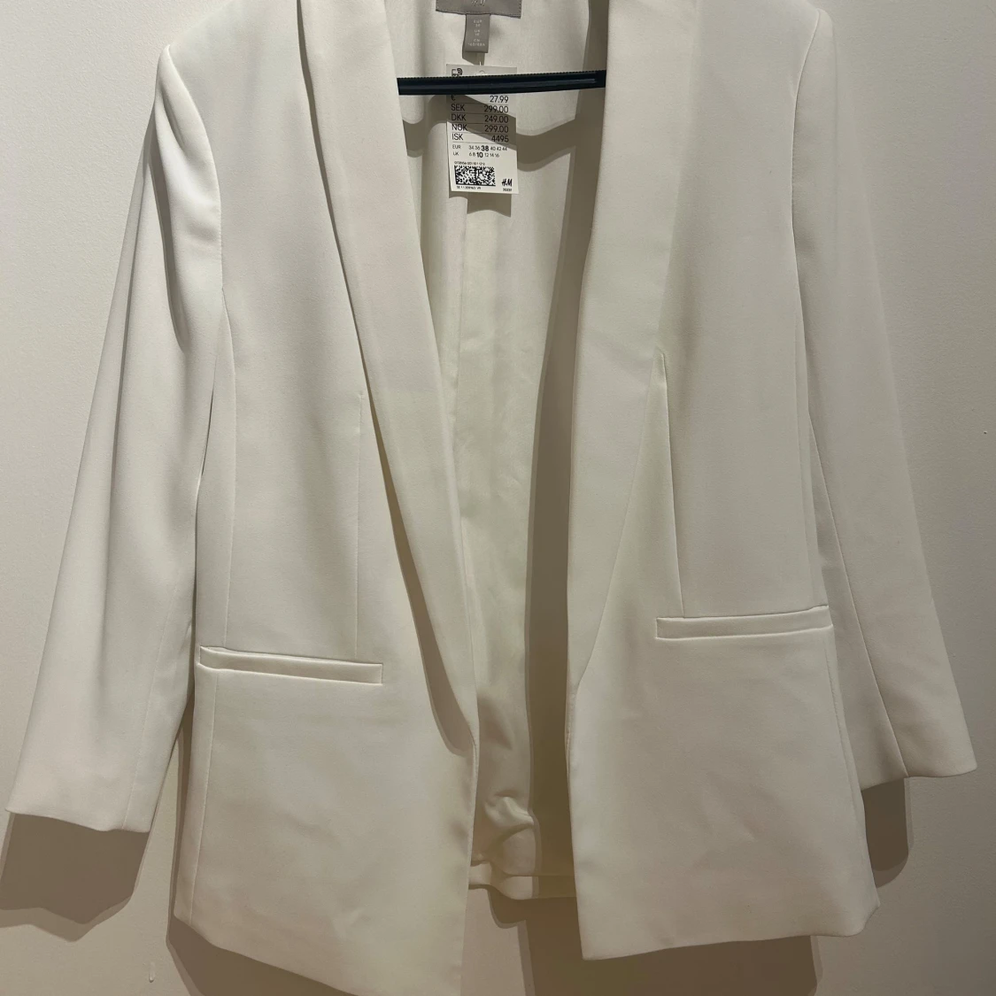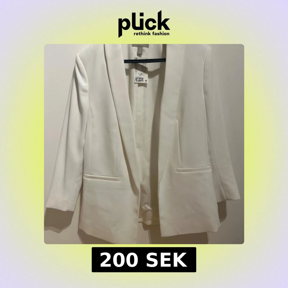 Snygg vit kavaj från H&M i storlek 38. Klassisk rak modell med smala slag och två fickor framtill. Stilren och minimalistisk design, perfekt för att lyfta vilken outfit som helst. Tillverkad i ett mjukt och lätt material som känns bekvämt hela dagen.