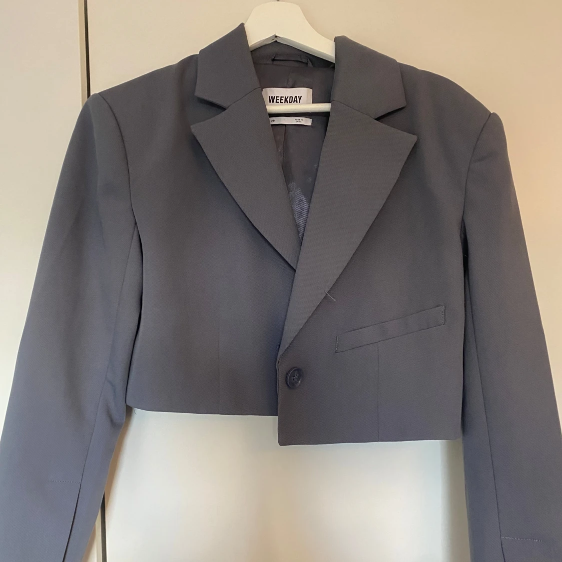 En grå assnygg cropped kavaj i storlek 38. Lite oversized som även passar för storlek 36🤍