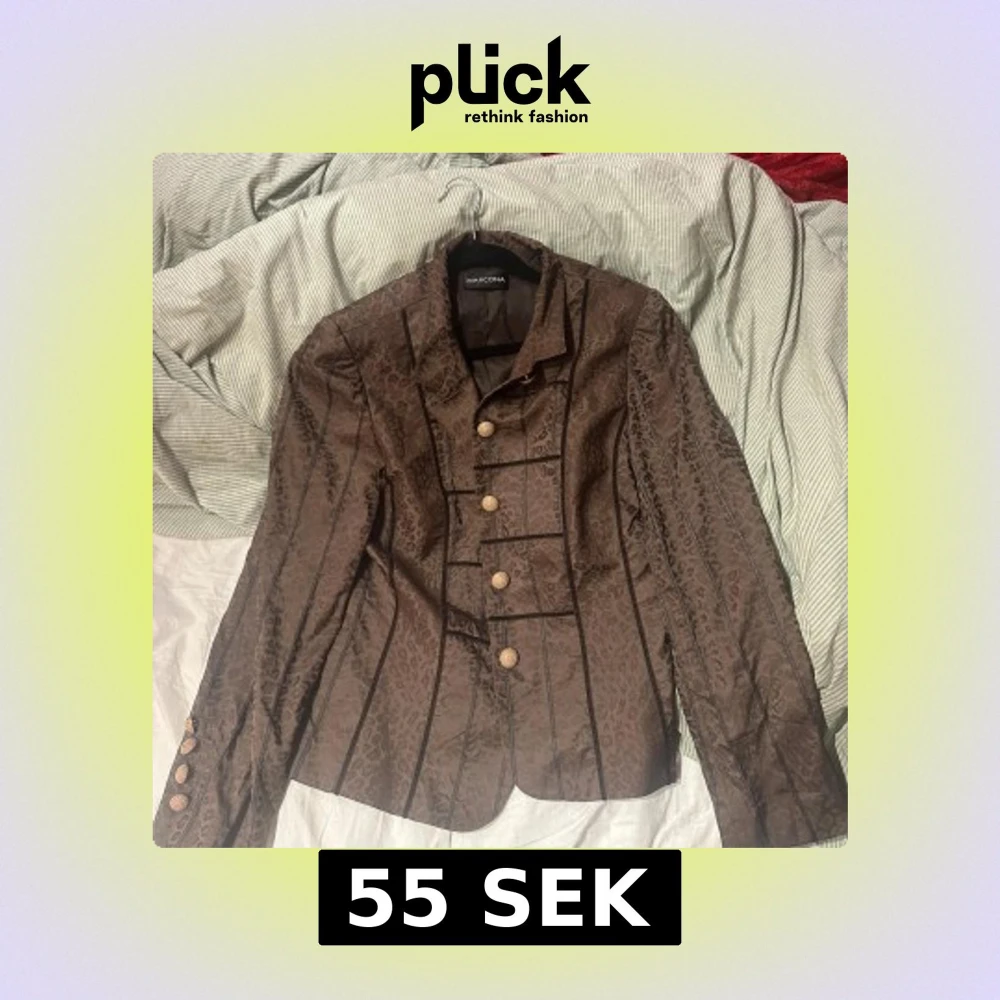 Elegant brun kavaj från Marcona med ett subtilt mönster och dekorativa knappar framtill. Kavajen har en klassisk krage och långa ärmar, perfekt för en stilren look.