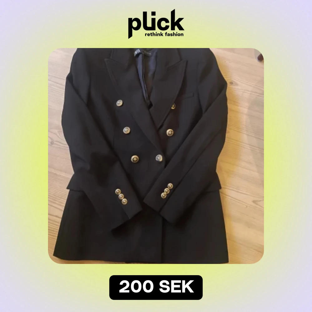 Snygg svart kostymkavaj från Zara med guldknappar. Nyskick.