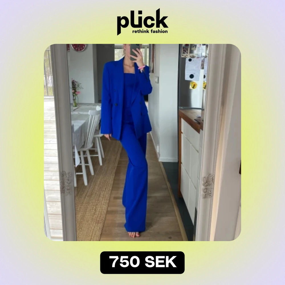 Ett otroligt kornblått set från Zara, aldrig använt! Tre delar: Kavaj storlek S, pris 450kr. Tubtopp storlek XS, pris 200kr. Byxor storlek S, pris 400kr. Kan köpas var för sig, paketpris 750kr. Skriv om du vill köpa enstaka plagg.