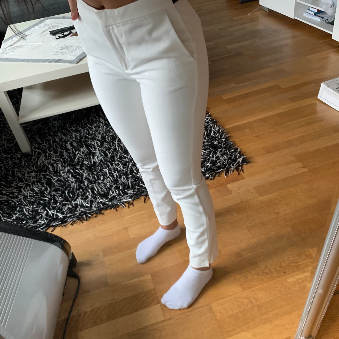 Helt nya kostymbyxor från zara som inte säljs längre. Vita med ett blått band där bak (se bild)