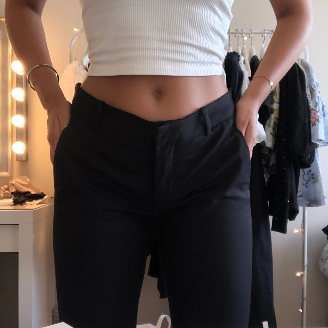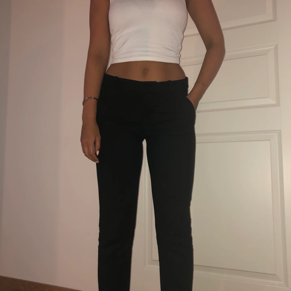 Svarta kostymbyxor från Zara, ursnygg passform & små slitsar vid slutet. Pris inklusive frakt!