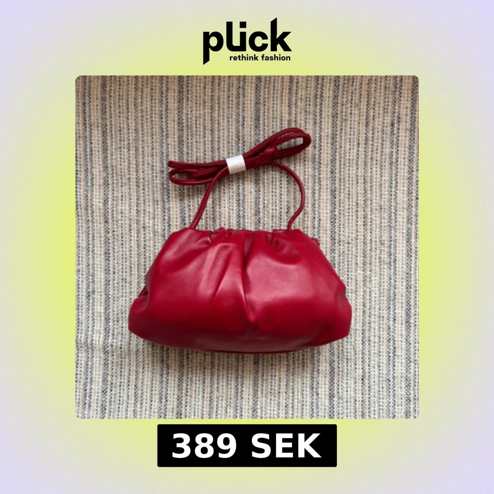 Snygg röd kuvertväska i mjukt, slätt skinn med puffig form och diskreta veck. Väskan har ett avtagbart axelband i matchande färg som kan användas som crossbody eller clutch. Perfekt för dig som vill ha en trendig accessoar med minimalistisk look. Veganskt läder!