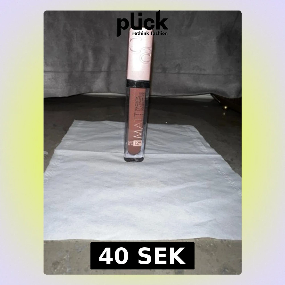 Säljer ett matt flytande läppstift från Catrice i färgen 'Vini Everyday', en snygg brunrosa nyans. Förpackningen är fyrkantig med genomskinlig kropp och roséguldfärgat lock. Håller upp till 12 timmar och har en smidig applikator för enkel applicering.