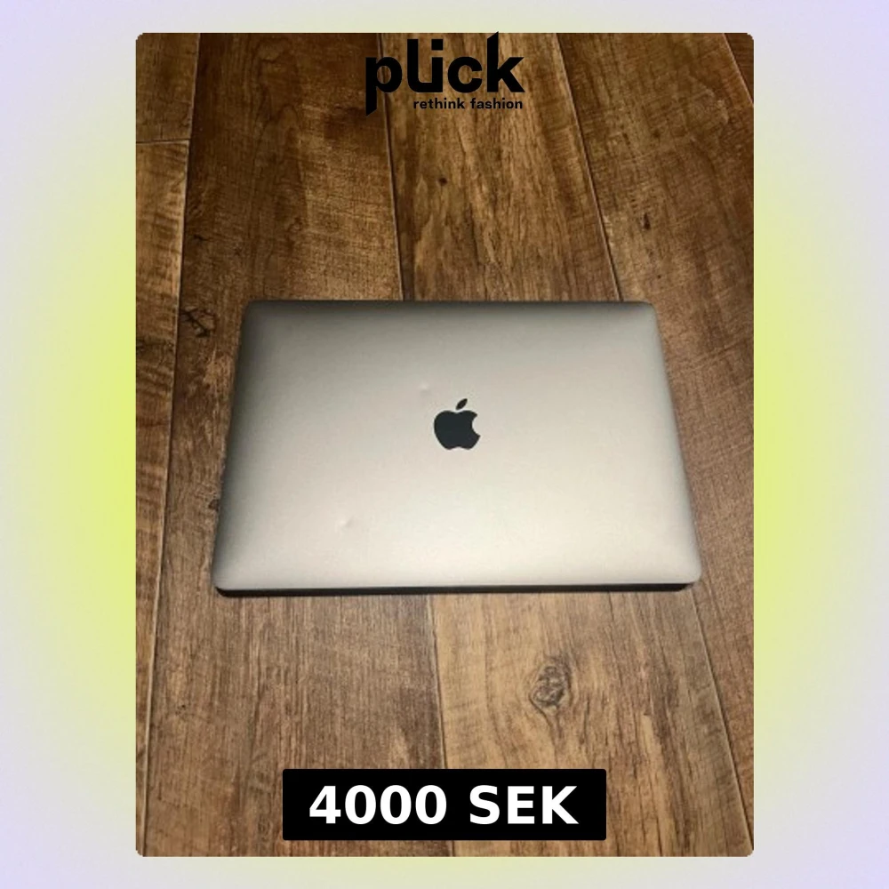 Snygg och stilren MacBook i silver med klassisk Apple-logga på locket. Tunn och smidig design i aluminium, svart tangentbord och stor trackpad. Perfekt för plugget eller kreativa projekt.