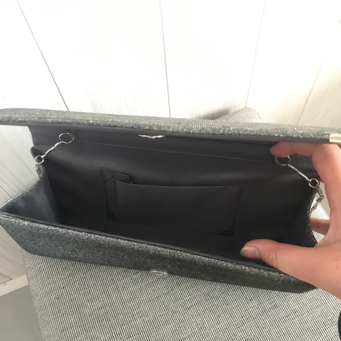 En snygg silver-glittrig handväska! Supersnygg på balen eller för utgång eller bara när man vill vara lite uppklädd. Vet inte vilket märke det är, köpte den i Italien för ett tag sedan. Jag säljer den för 70 kr+frakt. Tveka inte att höra av dig om du undrar något eller vill ha fler bilder eller så, jag svarar mer än gärna! Jag räknar med att frakten kan kosta 66 kr men ska vid intresse försöka få ner den kostnaden. Annars så kan jag mötas upp i Stockholms innerstad eller på Värmdö beroende på vad vi kommer överens om. 🔥