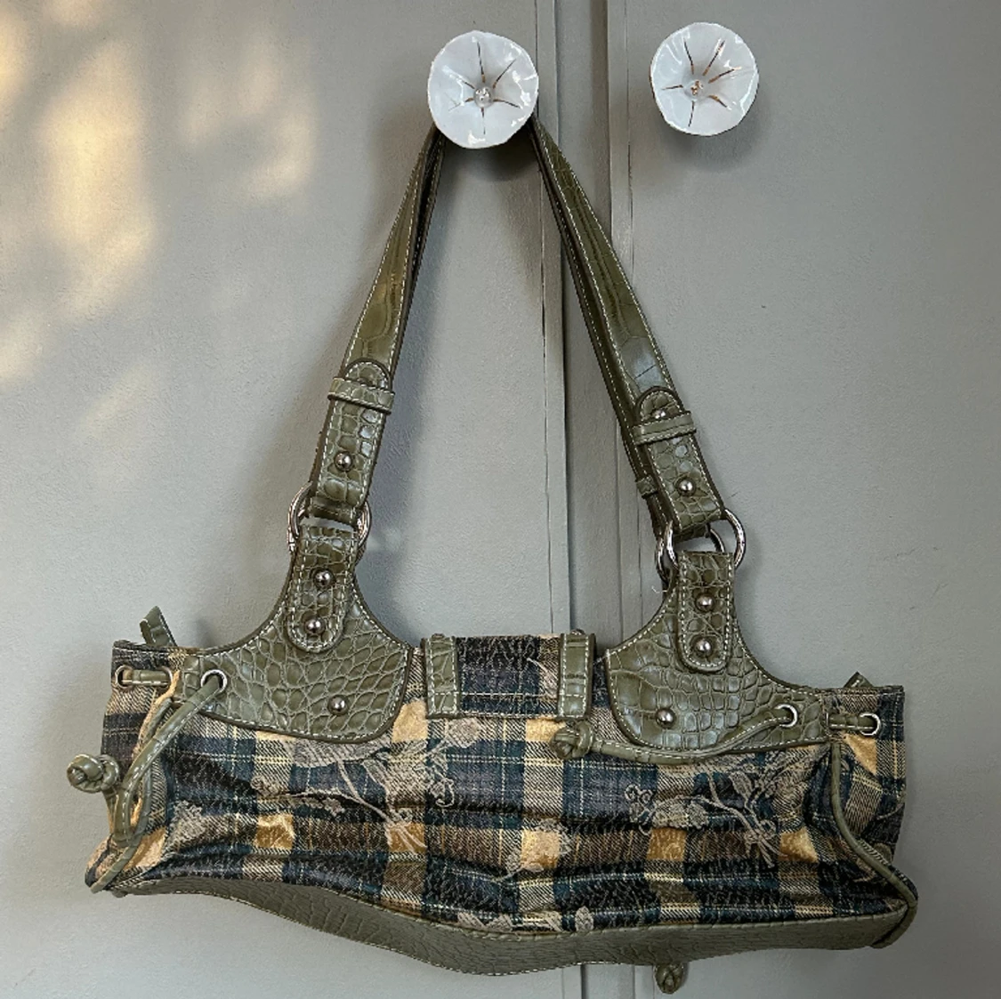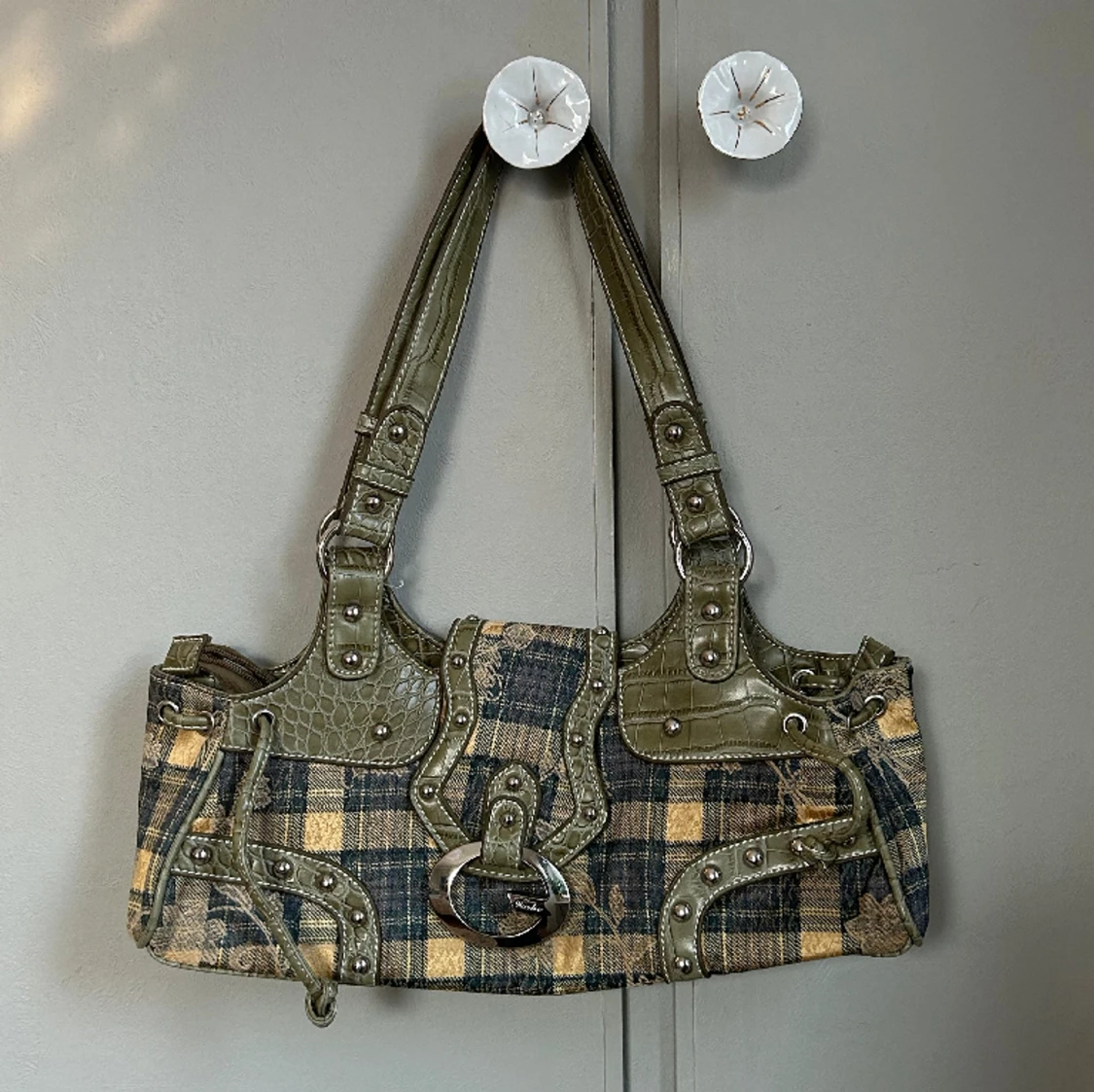 Så unik vintage axelremsväska med coola mönster och material detaljer! Köpt i USA men tyvärr har inte kommit till användning❤️Använd köp nu funktionen💋