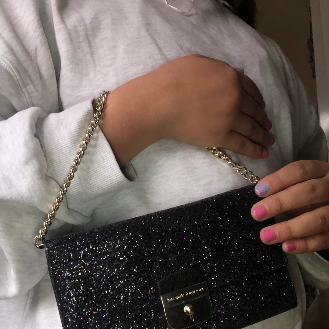 Den är väldigt fin och den glittrar säljer för samlar till en annan väska och har inte kommit till Användning på 1år
