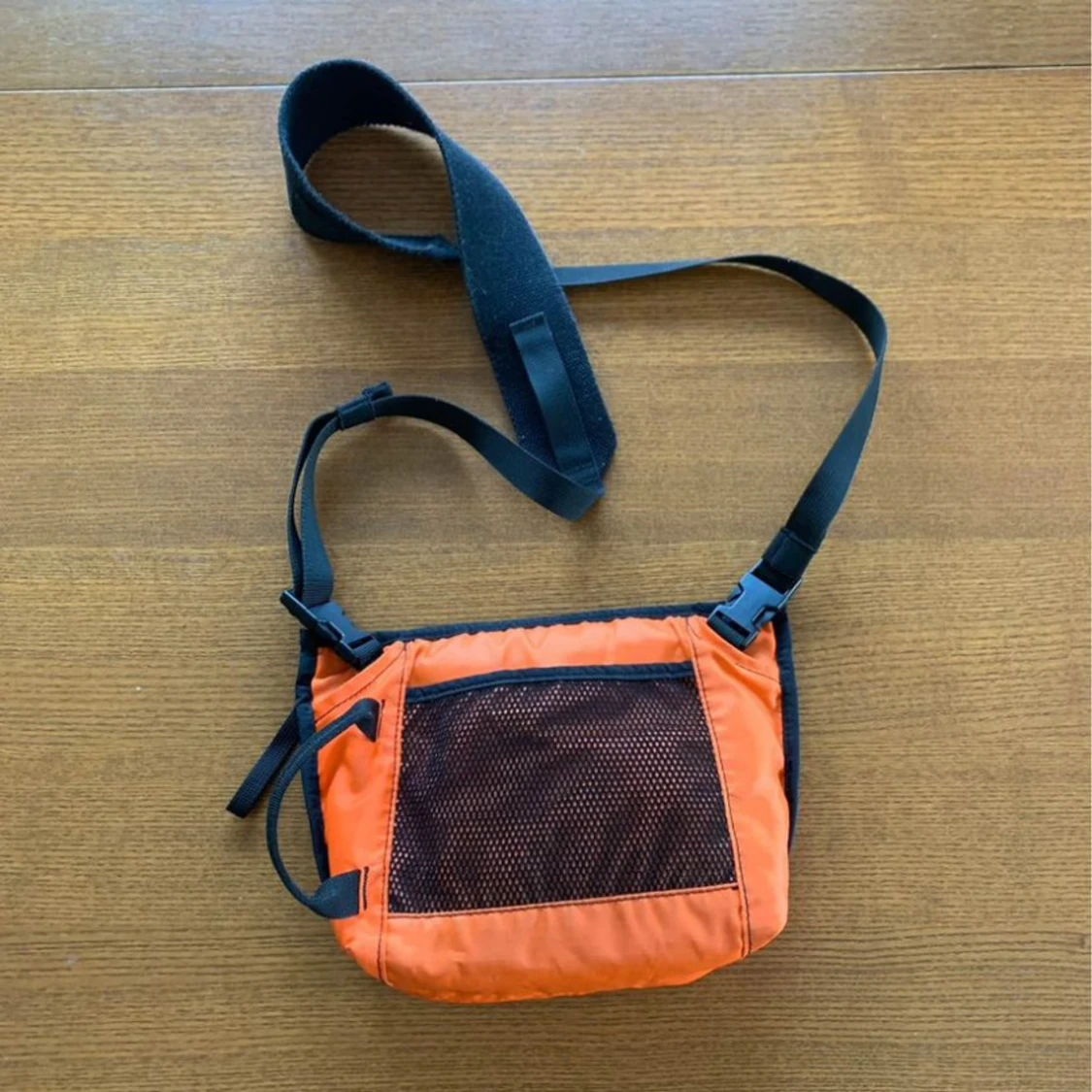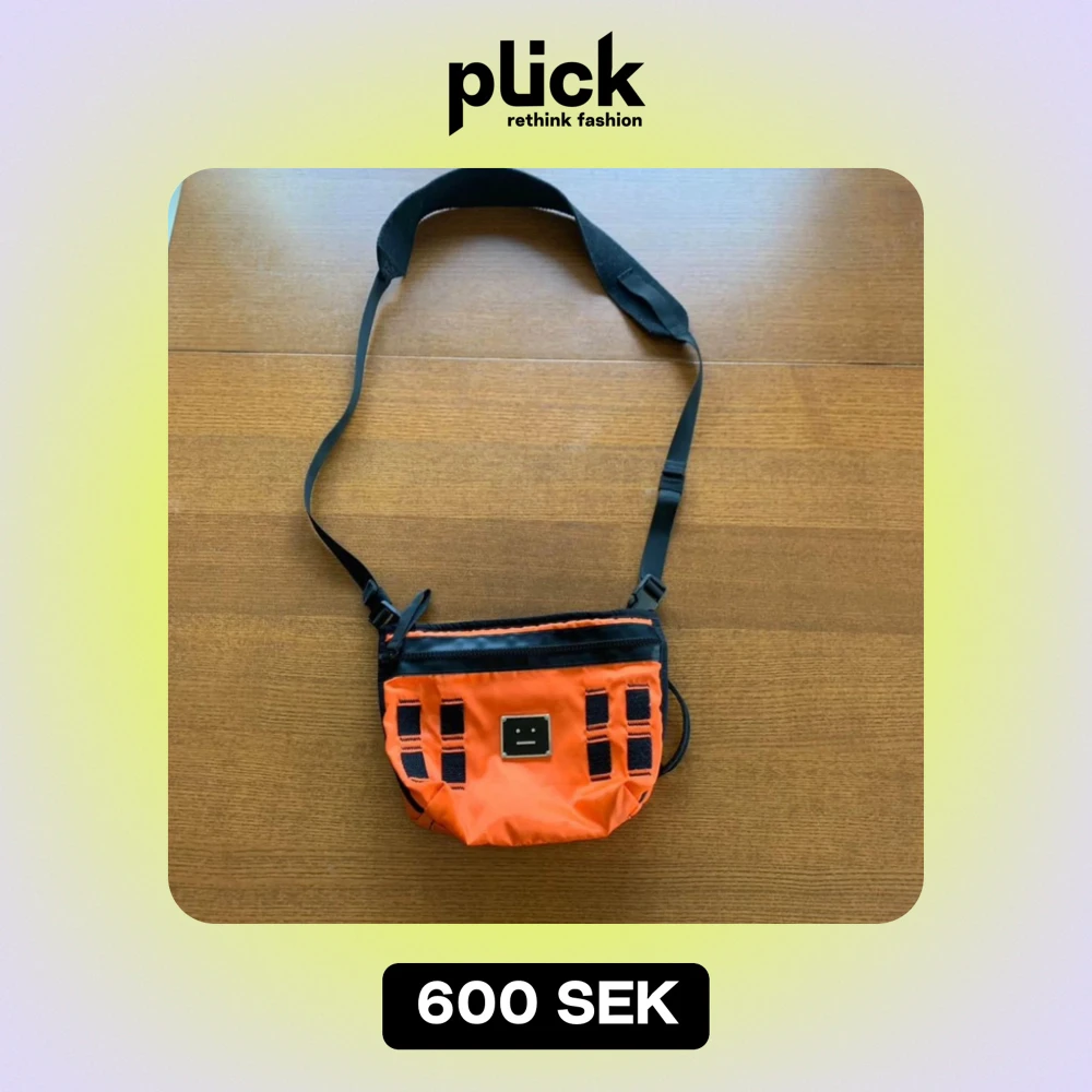 Säljer en cool orange axelväska från Acne Studios. Väskan har en justerbar rem och en praktisk dragkedja upptill. Perfekt för att bära med sig det nödvändigaste med stil. Den har också en svart detalj framtill som ger en extra touch. Använd den för en färgglad och trendig look!