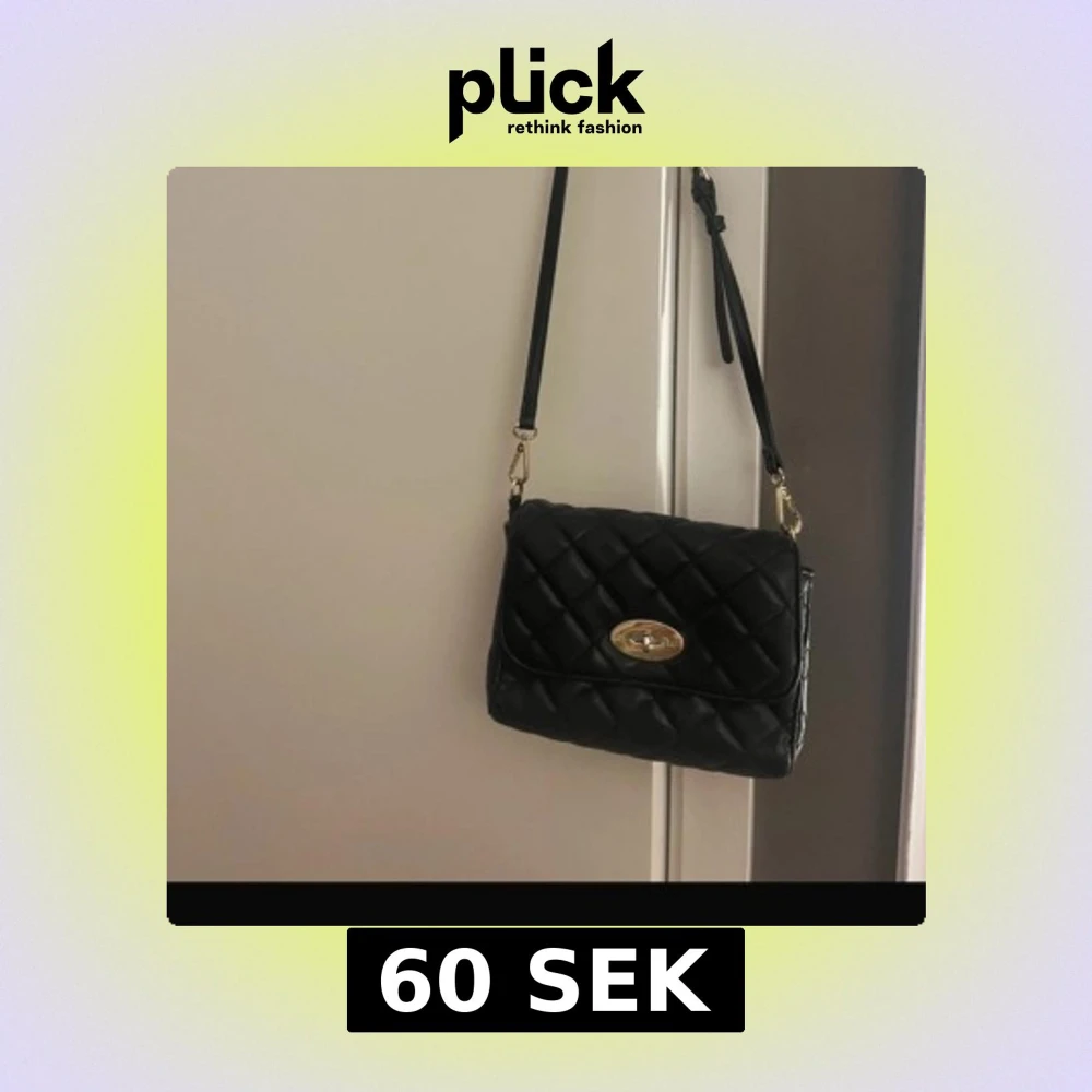 Snygg svart quiltad axelväska med gulddetaljer. Väskan har en praktisk dragkedja på baksidan och ett elegant spänne framtill. Perfekt för att bära dina nödvändigheter med stil.