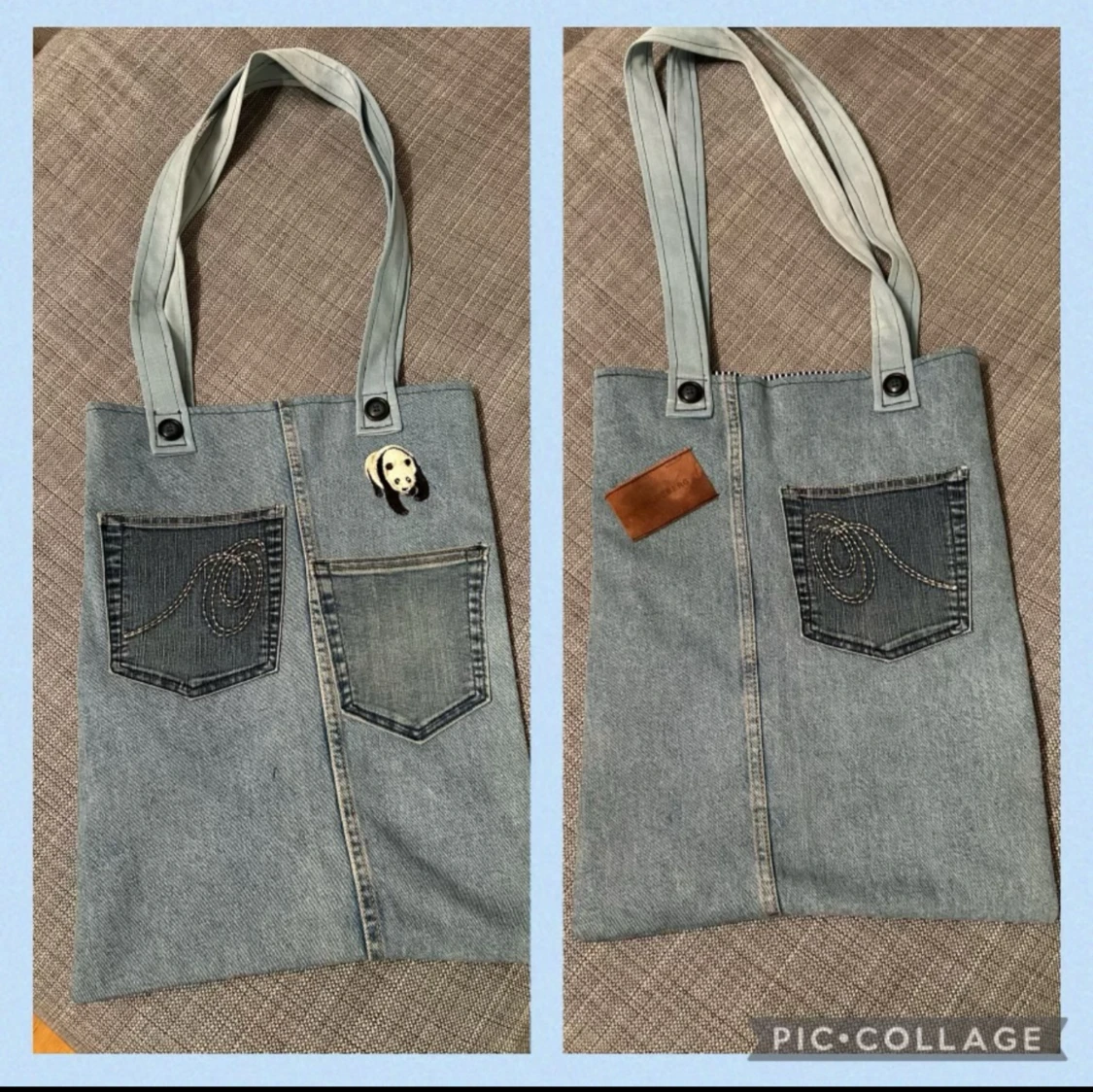 Lite större egensydd väska i färgen blå med små detaljer ❤️