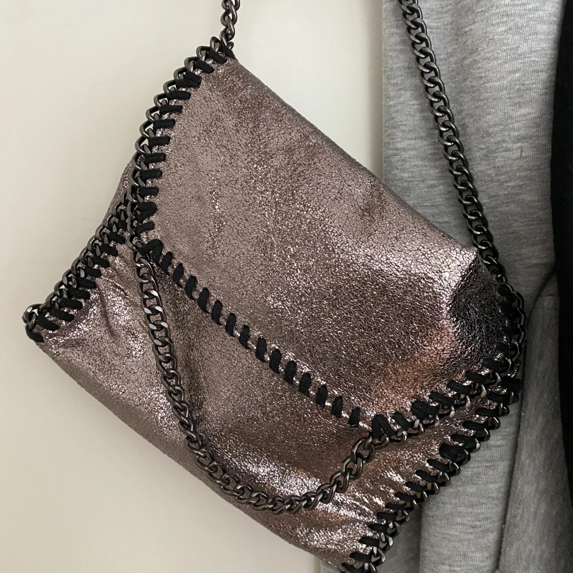 Denna super fina champagne/rosa glittriga väskan som är inplanerad utan stella mccartney kommer tyvärr inte till användning. Super fint skick, använd endast fåtal gånger!
