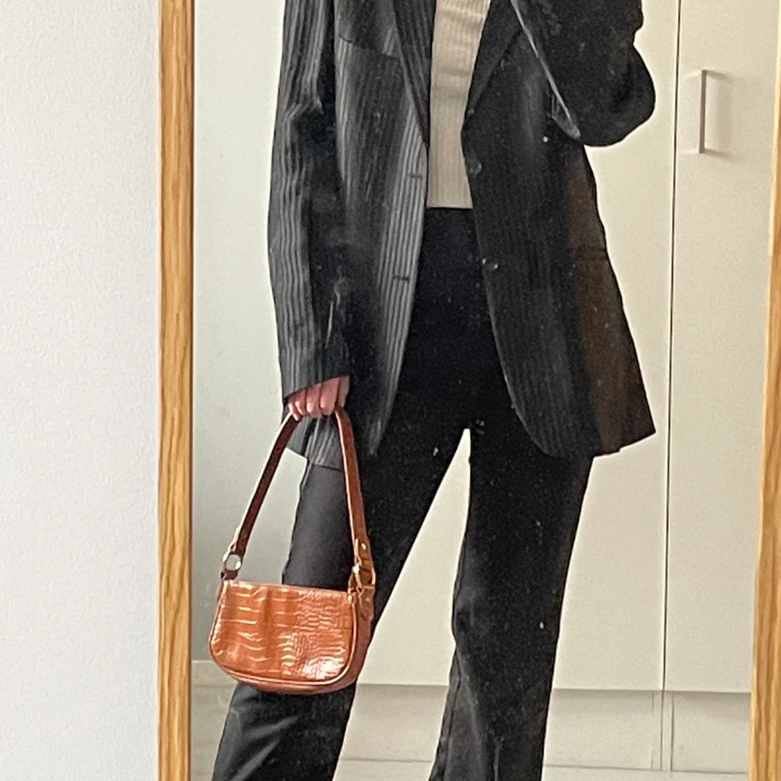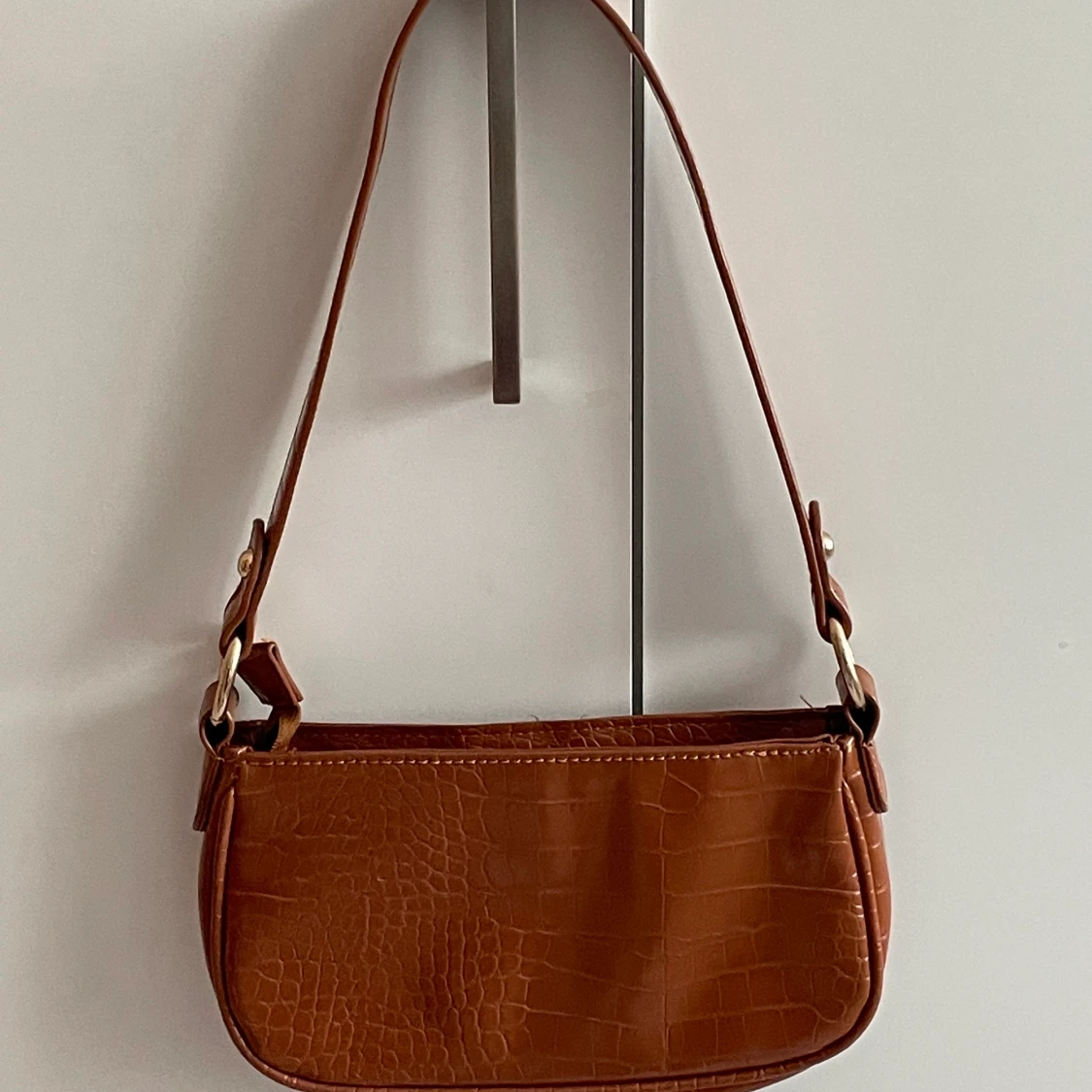 Skitsnygg miniväska i brunt ormskinn med gulddetaljer från asos. Använd ca 3 gånger.