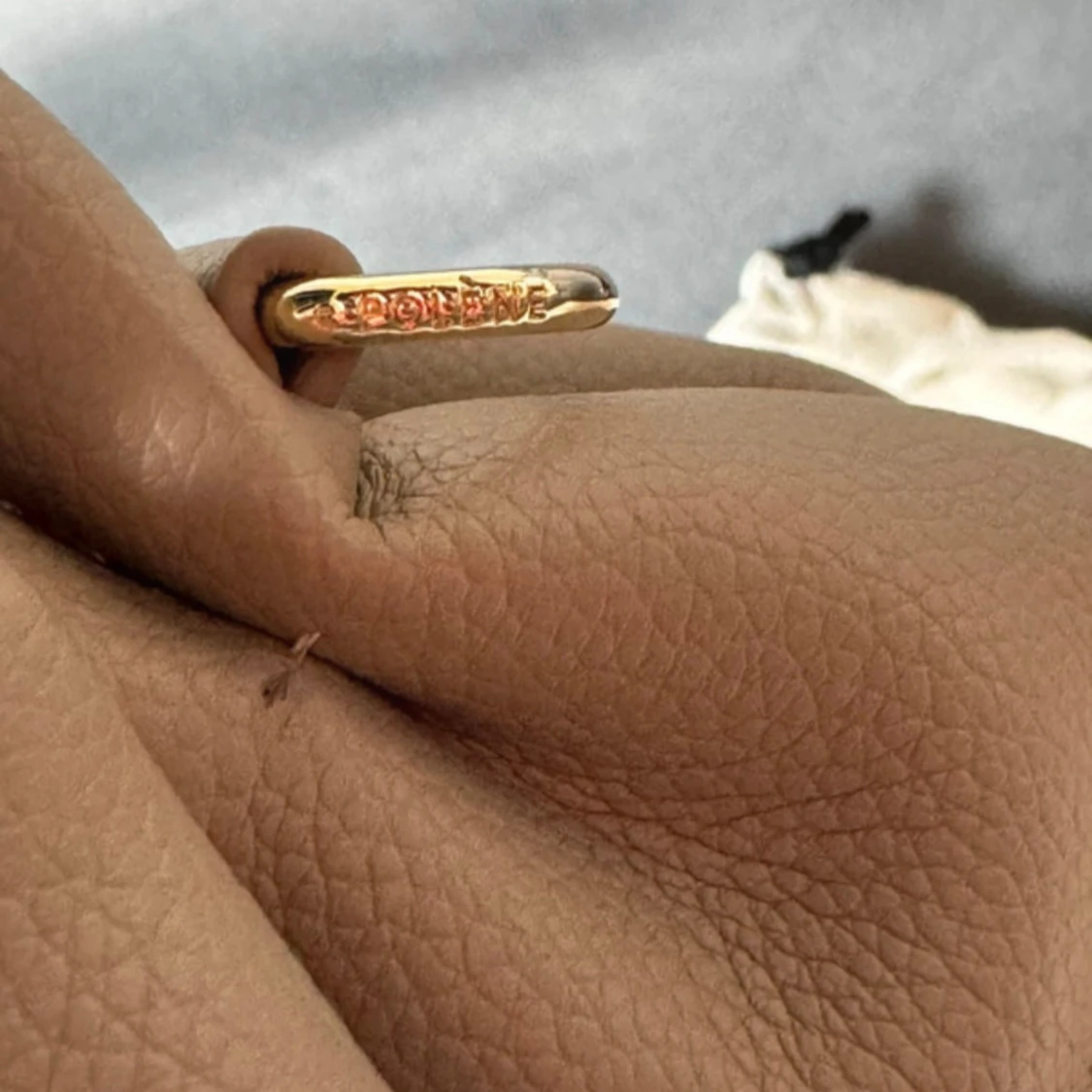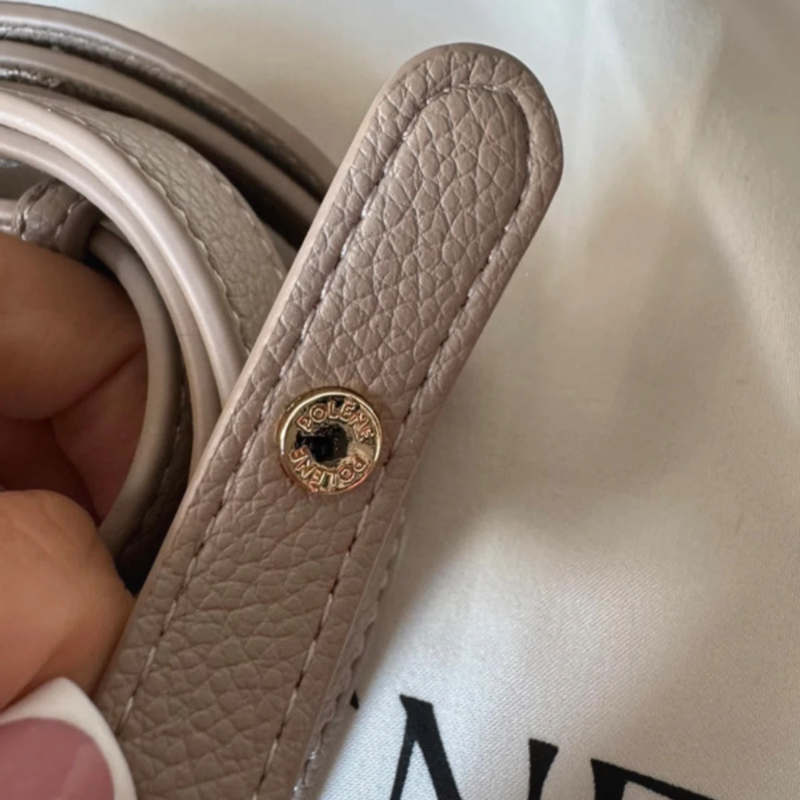 Beige axelremsväska från Polène i skinn i modellen neuf mini. Dustbag finns