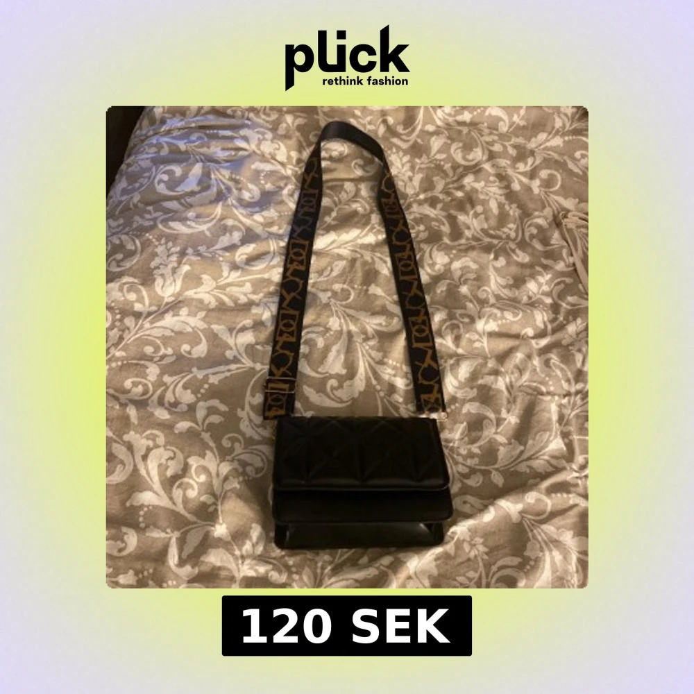 En svart väska. Vet tyvärr inte vilket märke det är. De finns plats mycket förvaring i den. Man kan byta vilken band man vill ha runt. Jätte bra skick använd 1 gång.
